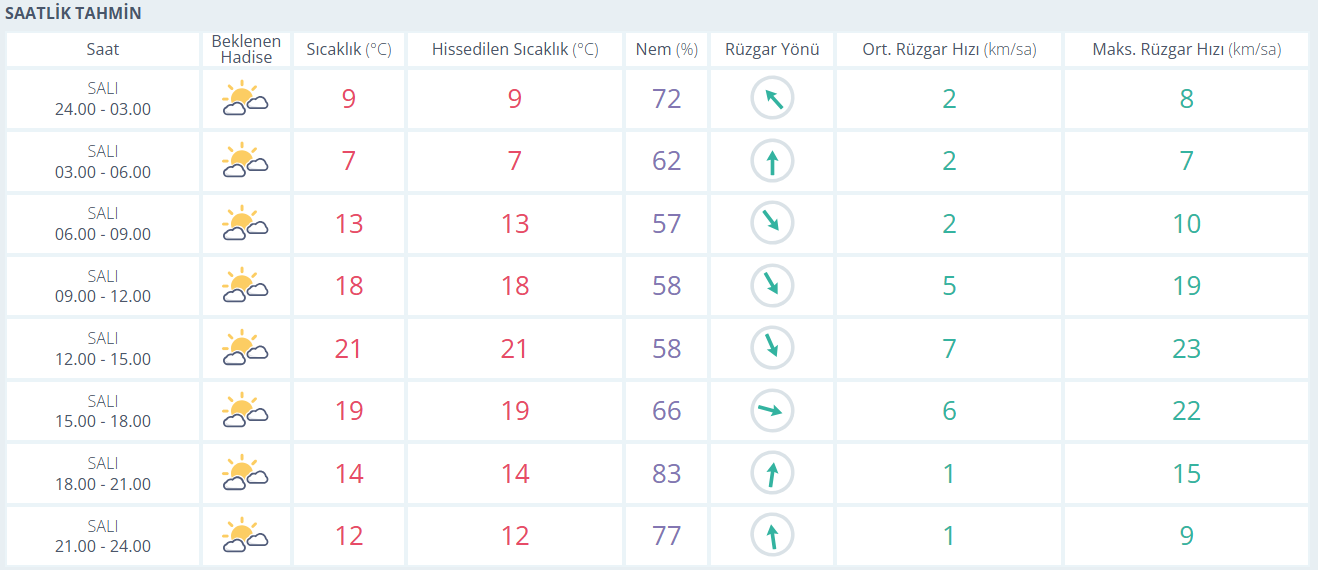 Kentte bugün (14 Nisan Salı) parçalı bulutlu bir gökyüzü hâkim. Sabah saatlerinde serin bir hava hissedilirken gün içinde sıcaklık 21 dereceye kadar yükseliyor. Nem oranı zaman zaman artsa da rüzgârın hafif esmesiyle bunaltıcı bir hava beklenmiyor. Gün genelinde sakin ve açık bir bahar günü yaşanacak.