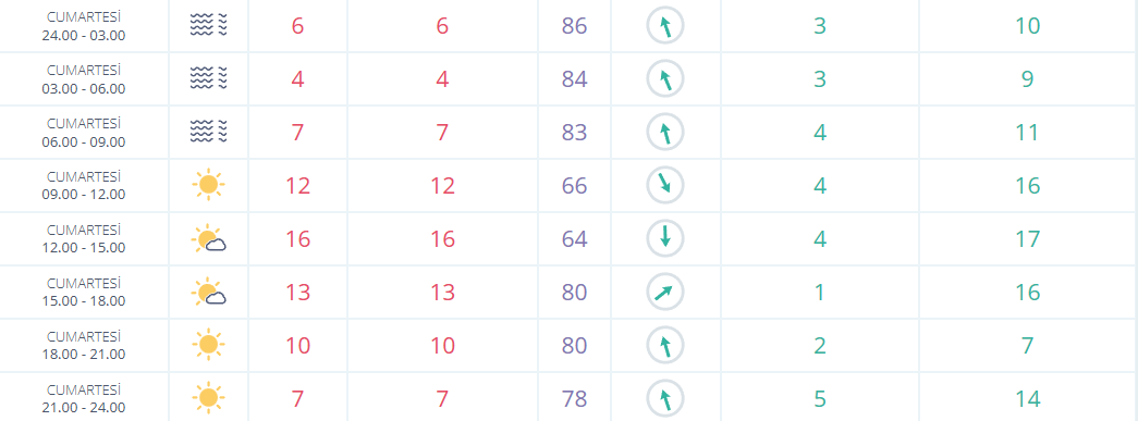 Meteoroloji verilerine göre sabah saatlerinde sıcaklık 2-4°C seviyelerine kadar düşecek. Günün ilerleyen saatlerinde güneşin yüzünü göstermesiyle sıcaklık 14-16°C aralığına yükselecek. Akşam saatlerinde ise sıcaklık yeniden azalarak 8-10°C seviyesine gerileyecek.