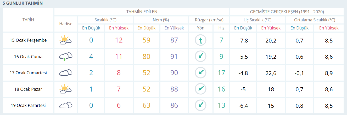 Önümüzdeki beş günlük süreçte Bursa’da genel olarak bulutlu ve serin bir hava etkili olacak. Perşembe günü en düşük sıcaklık 0, en yüksek sıcaklık 12 derece civarında seyredecek. Cuma günü yağış ihtimali artarken sıcaklık 4 ile 11 derece arasında değişecek. Cumartesi günü hava çok bulutlu, sıcaklık ise 2 ile 8 derece arasında olacak. Pazar günü parçalı bulutlu bir gökyüzü beklenirken, sıcaklık 1 ila 7 derece seviyelerinde kalacak. Haftanın ilk günü olan pazartesi ise bulutlu hava etkisini sürdürürken, en düşük sıcaklık 0, en yüksek sıcaklık 6 derece olarak tahmin ediliyor. Yetkililer özellikle sabah ve gece saatlerinde buzlanma ve pus riskine karşı sürücüleri dikkatli olmaları konusunda uyarıyor.