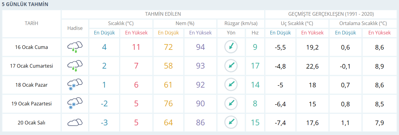 Önümüzdeki beş günlük periyotta Bursa’da kış koşulları daha belirgin hale geliyor. Cumartesi günü yağışlı hava devam ederken sıcaklıklar düşüyor; en yüksek sıcaklık 7 derece civarında kalıyor. Pazar günü yağışın yerini karla karışık yağmur ve yer yer kar alması bekleniyor, sıcaklık gündüz 6 dereceye, gece ise 1 dereceye kadar geriliyor. Pazartesi ve salı günleri ise soğuk hava daha etkili oluyor. Pazartesi günü gece sıcaklıkları sıfırın altına inerken, salı günü en düşük sıcaklığın -3 dereceye kadar düşmesi bekleniyor. Bu süreçte özellikle yüksek kesimlerde kar ihtimali artarken, buzlanma ve don riskine karşı dikkatli olunması gerekiyor.