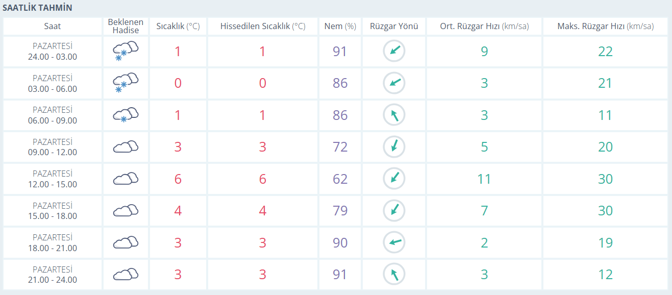 Bursa’da yeni haftayla birlikte soğuk ve yer yer yağışlı hava etkisini göstermeye başladı. Pazartesi günü gece ve sabah saatlerinde kar yağışı görülürken, gün içerisinde çok bulutlu bir hava hâkim oldu. Sıcaklık günün en düşük 0, en yüksek 6 derece civarında seyrederken, nem oranının yüksek olması nedeniyle soğuk daha fazla hissedildi. Rüzgârın zaman zaman saatte 30 kilometreye yaklaşan hamleler yaptığı gözlendi.