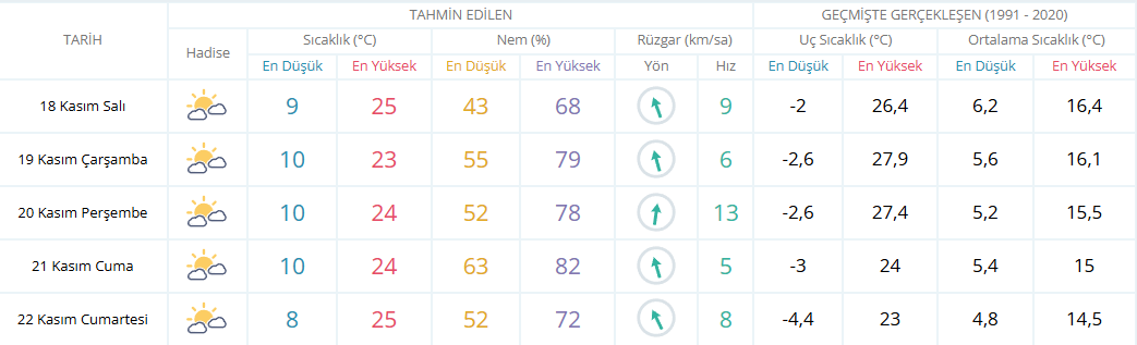 Bursa’da Salı günü hava dalgalı bir seyir izleyecek. Sabah saatlerinde 11–12 °C civarında serin bir hava hakim olacak. Öğleye doğru sıcaklık hızla artarak 23 °C’ye kadar yükselecek. Akşam saatlerinde ise bulutlar şehri kaplamaya başlayacak ve sıcaklık tekrar 14–15 °C’ye düşecek.