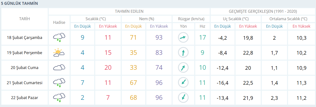 Ancak hafta sonuna doğru yeniden yağış bekleniyor. Cumartesi günü en yüksek sıcaklık 11 derece civarında kalırken, pazar günü ise sıcaklık 7 dereceye kadar gerileyecek. Özellikle pazar günü sabah saatlerinde 2 dereceye kadar düşmesi beklenen hava sıcaklığıyla birlikte serin ve yağışlı bir gün yaşanacak.