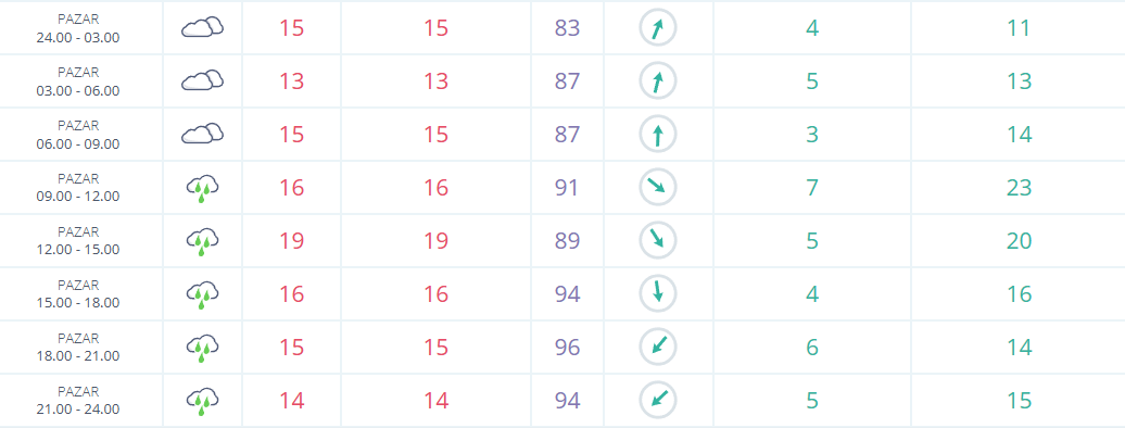 Sabah erken saatlerde sıcaklık 14–15 derece civarında seyredecek. Öğleye doğru yağışın kısa süreli olarak durması ve sıcaklığın 18–19 dereceye kadar yükselmesi bekleniyor. Ancak akşam saatlerinden itibaren hava yeniden soğuyarak 13–14 dereceye kadar düşecek.