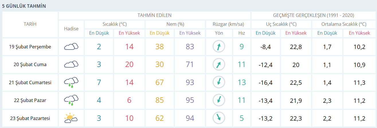 Pazar günü yağış devam edecek ancak sıcaklıklarda belirgin düşüş yaşanacak. Termometreler 4 ile 6 derece arasında kalacak. Yeni haftanın ilk gününde ise yağışın yerini yeniden parçalı bulutlu bir hava alması bekleniyor. Pazartesi günü en düşük 3, en yüksek 10 derece tahmin ediliyor.