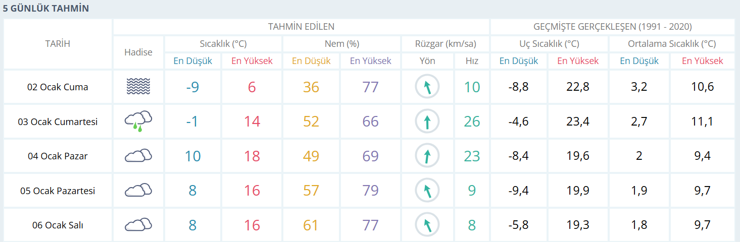 Önümüzdeki beş günlük periyotta Bursa’da hava kademeli olarak ısınıyor. Cuma günü soğuk hava hâkim olurken gece en düşük sıcaklık eksi 9 dereceye kadar geriliyor, gündüz ise 6 dereceye kadar çıkıyor. Cumartesi günü sıcaklıklar belirgin biçimde artıyor; gece hafif don riski devam etse de gündüz 14 dereceye ulaşan bir hava bekleniyor ve yer yer yağış görülebilir. Pazar günüyle birlikte ılıman hava etkisini daha net hissettiriyor, en yüksek sıcaklık 18 dereceye kadar yükseliyor. Yeni haftanın ilk günlerinde bulutlu bir gökyüzü altında sıcaklıklar gece 8, gündüz ise 16 derece civarında seyrediyor. Genel tabloya bakıldığında Bursa’da sert kış soğuğunun yerini kısa sürede daha ılıman ve bahar havasını andıran günlere bırakacağı görülüyor.