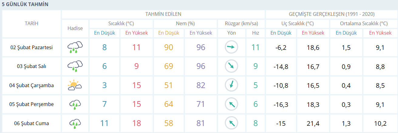 Önümüzdeki beş günlük periyotta Bursa’da hava dalgalı bir seyir izleyecek. Salı günü yağış devam ederken sıcaklıklar bir miktar düşüyor; gün içinde en yüksek sıcaklık 9 derece civarında kalıyor. Çarşamba günü ise yağışa ara veriliyor ve parçalı bulutlu bir gökyüzüyle birlikte sıcaklıklar yükselişe geçiyor; gündüz saatlerinde 15 dereceye kadar çıkan daha ılıman bir hava bekleniyor. Perşembe günü yağmur yeniden kendini gösterirken sıcaklıklar benzer seviyelerde seyrediyor. Haftanın son iş günü olan cuma günü ise hava daha ılık; sıcaklık 18 dereceye kadar yükselirken yağış ihtimali yine gündemde.