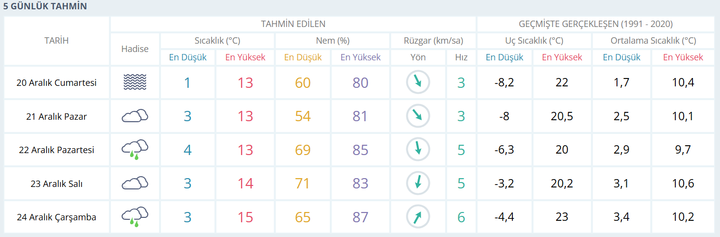 Önümüzdeki beş gün boyunca Bursa’da ılıman ve mevsim normallerine yakın bir hava bekleniyor. Cumartesi ve pazar günleri bulutlu ve yer yer sisli bir gökyüzü öne çıkarken, gündüz sıcaklıkları 13 derece civarında olacak. Pazartesi ve çarşamba günleri aralıklı yağmur geçişleri bekleniyor; bu günlerde sıcaklıklar gece 3–4 dereceye kadar inerken gündüz 13–15 derece arasında değişecek. Salı günü ise yağış beklenmezken çok bulutlu bir hava hakim olacak.