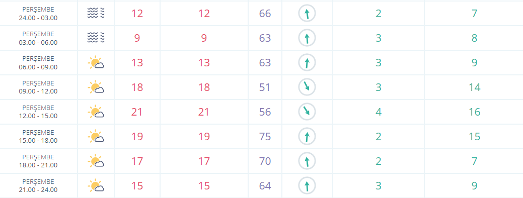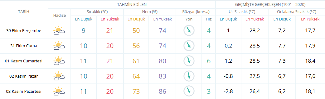 Gece ve sabah saatlerinde sıcaklık 6-9 dereceye kadar düşecek. Öğle saatlerinden itibaren hava ısınacak, sıcaklık 22 dereceye kadar yükselecek. Akşam saatlerinde ise sıcaklığın yeniden 14-16 dereceye gerilemesi bekleniyor.