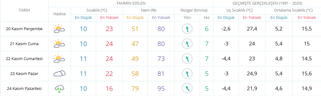 Günün ilk saatlerinde yoğun bulutluluk hâkim olurken, öğleden itibaren bulutların yerini parçalı bulutlu ve aralıklı güneşli bir hava alması bekleniyor. Akşam saatlerinde ise sıcaklık yeniden 17–18 derece seviyelerine gerileyecek. Gece boyunca bulutlu gökyüzü etkisini sürdürürken sıcaklık 15 dereceye kadar düşecek.
