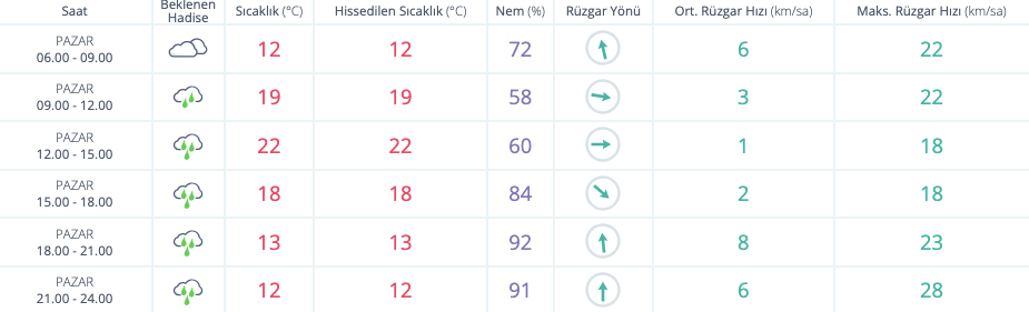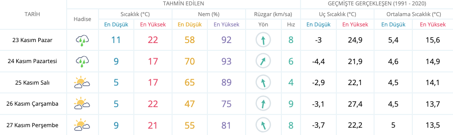 Öğleden sonra saatlerinde en yüksek sıcaklık 23 °C civarında öngörülüyor.