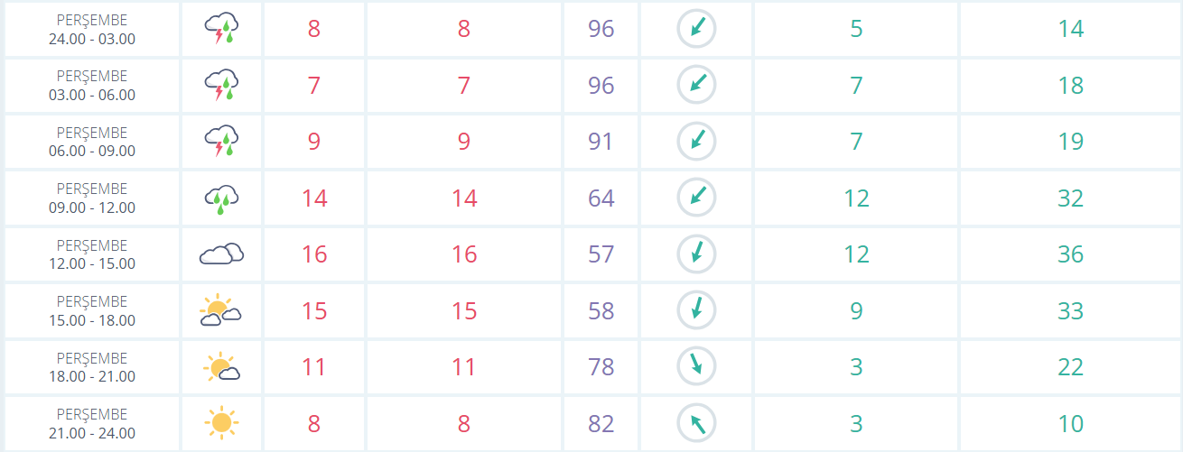 Bursa için yayımlanan son hava tahminlerine göre kentte bugün parçalı ve yer yer yağışlı bir hava etkili oluyor. Sabah saatlerinde gök gürültülü sağanak geçişleri görülürken, gün içinde sıcaklık 16 dereceye kadar yükseliyor. Nem oranının yüksek seyrettiği kentte rüzgarın zaman zaman etkisini artırması bekleniyor. Öğleden sonra yağışların yerini parçalı bulutlu bir gökyüzü alırken, akşam saatlerinde hava daha sakin ve açık bir görünüme kavuşuyor.