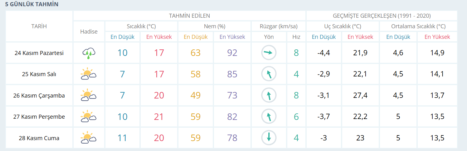 Bursa'da hafta başı biraz daha soğuk ve yağışlı bir hava var, ancak sonraki günlerde sıcaklıklar artacak ve yağış azalacak.