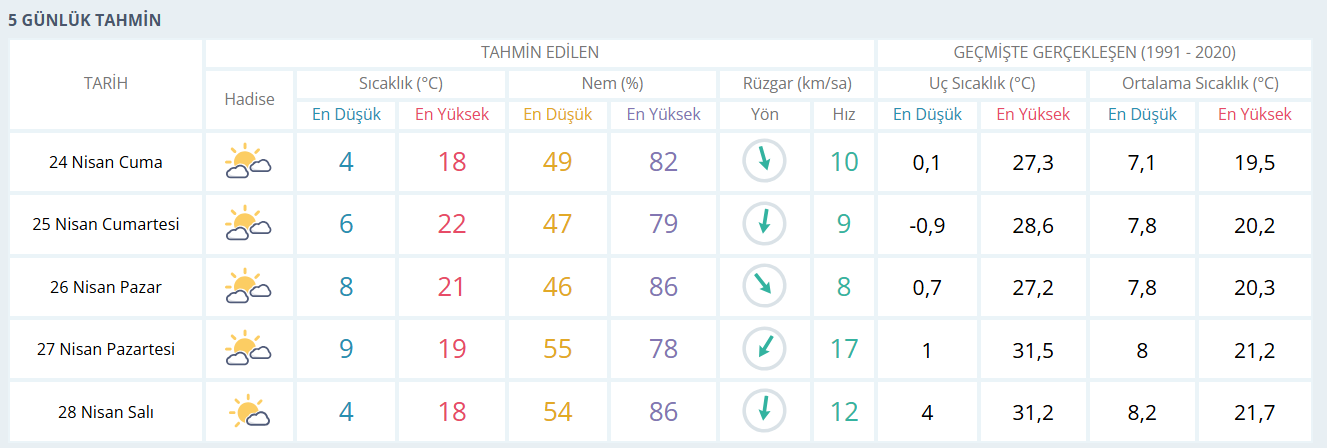 Kentte önümüzdeki beş gün boyunca ise genel tablo parçalı bulutlu ve yer yer güneşli bir hava şeklinde öne çıkıyor. Hafta sonu sıcaklıkların yükselmesi dikkat çekiyor; cumartesi günü 22 dereceye kadar çıkan değerler, pazar günü 21 derece civarında kalıyor. Yeni haftayla birlikte sıcaklıklar bir miktar düşüş eğilimine girse de 18-19 derece bandında kalmayı sürdürüyor. Gece sıcaklıkları ise genellikle 4 ile 9 derece arasında değişiyor. Nem oranının zaman zaman artmasıyla birlikte özellikle sabah ve akşam saatlerinde serinlik hissi korunurken, rüzgarın bazı günler daha etkili olması bekleniyor. Genel görünüm, bahar havasının Bursa’da etkisini sürdürdüğünü gösteriyor.
