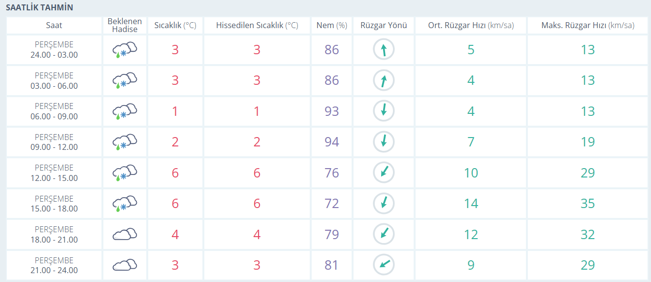 Bursa’da kışın son günleri serin ve yer yer yağışlı geçiyor. Gece saatlerinden itibaren etkili olan yağış, sabaha karşı sıcaklığın 1 dereceye kadar düşmesiyle birlikte zaman zaman sulu kara dönüşüyor. Gün içinde termometreler 6 dereceyi gösterirken nem oranı yüzde 90’ların üzerine çıkıyor. Öğle saatlerinden sonra rüzgârın etkisini artırması bekleniyor; özellikle 15.00–18.00 arasında saatte 35 kilometreye ulaşan hamleler hissedilecek. Akşam saatlerinde yağış zayıflarken hava çok bulutlu bir görünüm alacak ve sıcaklık yeniden 3–4 derece seviyelerine inecek.