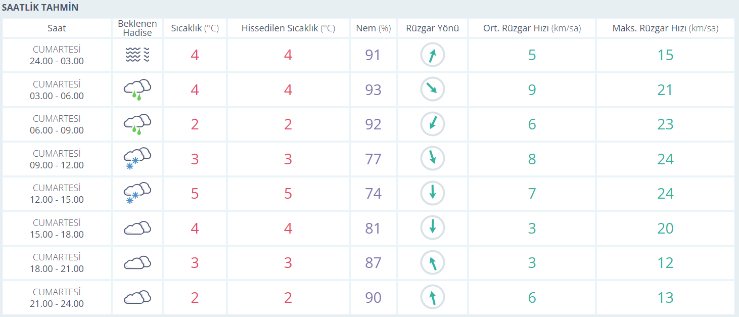 Bursa’da bugün kış koşulları gün boyunca etkisini gösteriyor. Cumartesi günü gece saatlerinden itibaren yüksek nemle birlikte sisli ve yağışlı bir hava görülürken, sabaha karşı yağmur etkili oluyor. Sabah saatlerinde sıcaklık 2–3 dereceye kadar düşüyor ve yer yer karla karışık yağmur ihtimali öne çıkıyor. Öğleye doğru sıcaklık 5 derece civarına yükselse de bulutlu ve soğuk hava hissi sürüyor. Günün ilerleyen saatlerinde yağış etkisini kaybediyor, akşam ve gece saatlerinde ise çok bulutlu bir gökyüzü altında sıcaklık yeniden 2–3 dereceye düşüyor.