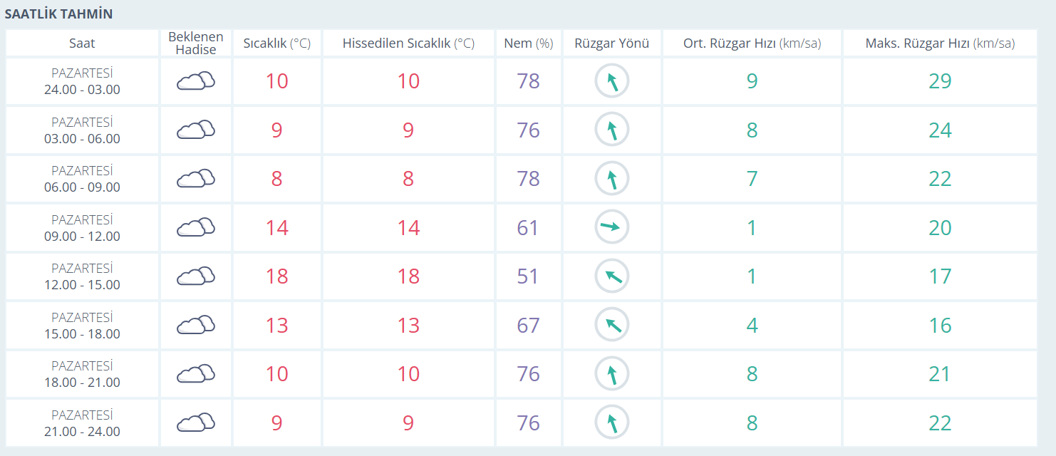 Bursa’da bugün hava çok bulutlu geçecek. Günün ilk saatlerinde sıcaklık 9–10 derece civarında seyrederken, sabah saatlerinden itibaren kademeli olarak artacak. Öğle saatlerinde termometrelerin 18 dereceye kadar yükselmesi bekleniyor. Nem oranı gün boyunca yüksek seyrederken, rüzgâr genellikle hafif ve zaman zaman orta kuvvette esecek. Akşam saatlerinden sonra sıcaklık yeniden düşerek gece 9–10 derece seviyelerine inecek.