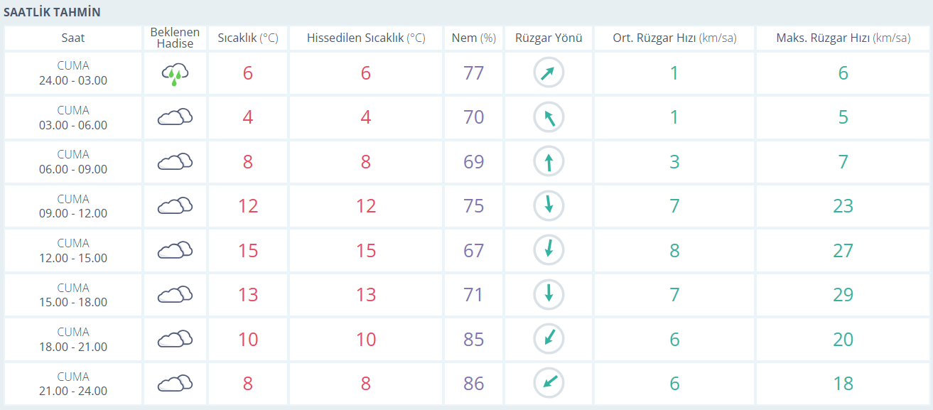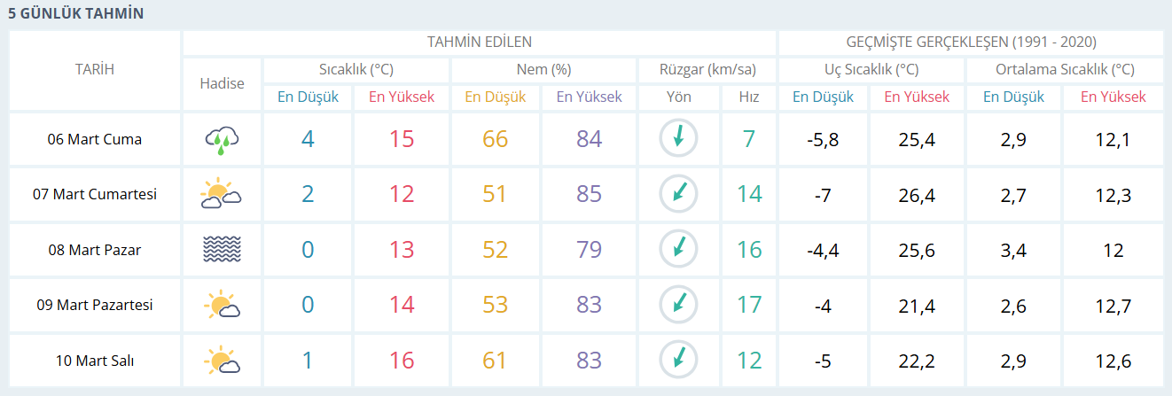 Bursa’da hafta sonuna doğru hava parçalı bulutlu ve serin bir başlangıç yapacak. Meteoroloji verilerine göre 6 Mart Cuma günü kentte gece saatlerinde hafif yağış beklenirken, günün ilerleyen saatlerinde bulutlu bir gökyüzü hakim olacak. Gece saatlerinde sıcaklık 6 derece civarında ölçülürken sabah saatlerinde 4 dereceye kadar düşecek. Öğle saatlerine doğru ise hava nispeten ısınacak ve sıcaklık 15 dereceye kadar yükselecek. Gün boyunca nem oranının yüzde 66 ile 84 arasında değişmesi, rüzgarın ise saatte ortalama 7 kilometre hızla esmesi bekleniyor.