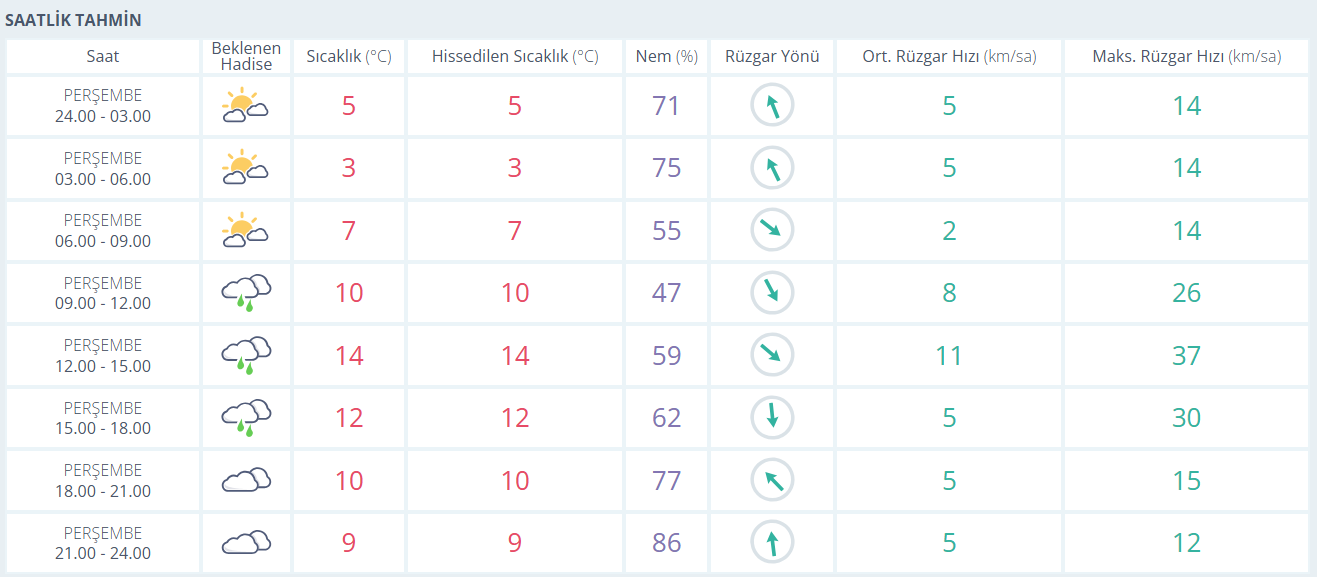Bursa için yapılan son tahminlere göre kentte bugün gökyüzü kapalı ve zaman zaman yağışlı bir hava etkili oluyor. Gece saatlerinden itibaren başlayan bulutlanma, sabahın erken saatlerinde serin bir atmosferle birlikte hissediliyor. Günün ilerleyen saatlerinde yağmurun etkisini artırması beklenirken, sıcaklık öğle saatlerinde en fazla 14 dereceye kadar yükseliyor. Nem oranının gün boyunca yüksek seyretmesiyle birlikte hissedilen sıcaklık da benzer seviyelerde kalıyor. Rüzgar ise genellikle hafif ve zaman zaman orta kuvvette eserek gün içinde belirgin bir sertlik oluşturmuyor.