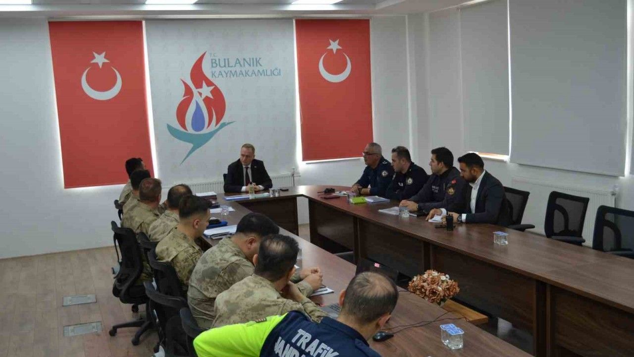 Bulanık Kaymakamlığı ev sahipliğinde gerçekleştirilen toplantıda, ilçenin genel asayiş tablosu, suçla mücadele stratejileri ve kamu düzenini korumaya yönelik atılacak yeni adımlar geniş bir perspektifle ele alındı. Kaymakam Ömer Övünç Koşansu’nun başkanlık ettiği toplantıya; İlçe Emniyet Müdürü Engin Arli, İlçe Jandarma Komutanı Üsteğmen Kazım Tüysüz, karakol komutanları ile emniyet ve jandarma birimlerinin operasyonel şube amirleri katıldı.