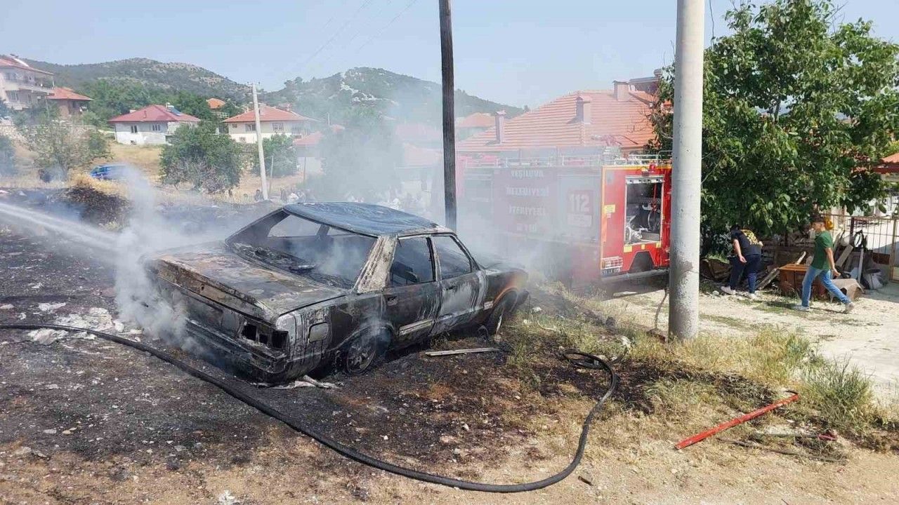 Burdur’un Yeşilova ilçesinde park halindeki otomobil, yangında kullanılamaz hale geldi.
