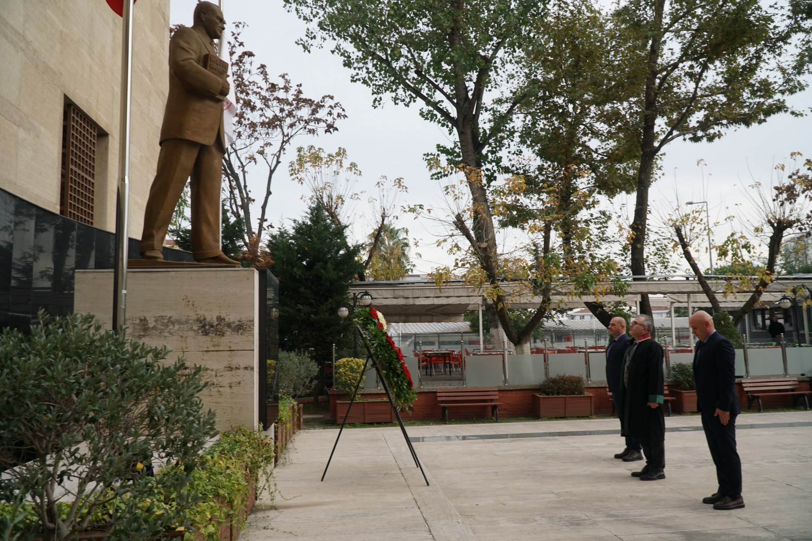 Saatler Ulu Önder'in hayata gözlerini yumduğu saat 9.05 öncesi Bursa Barosu Başkanı Av. Metin Öztosun anıta çelenk sundu. 9.05'te sirenler eşliğinde bir dakikalık saygı duruşunun ardından İstiklal Marşı okundu.