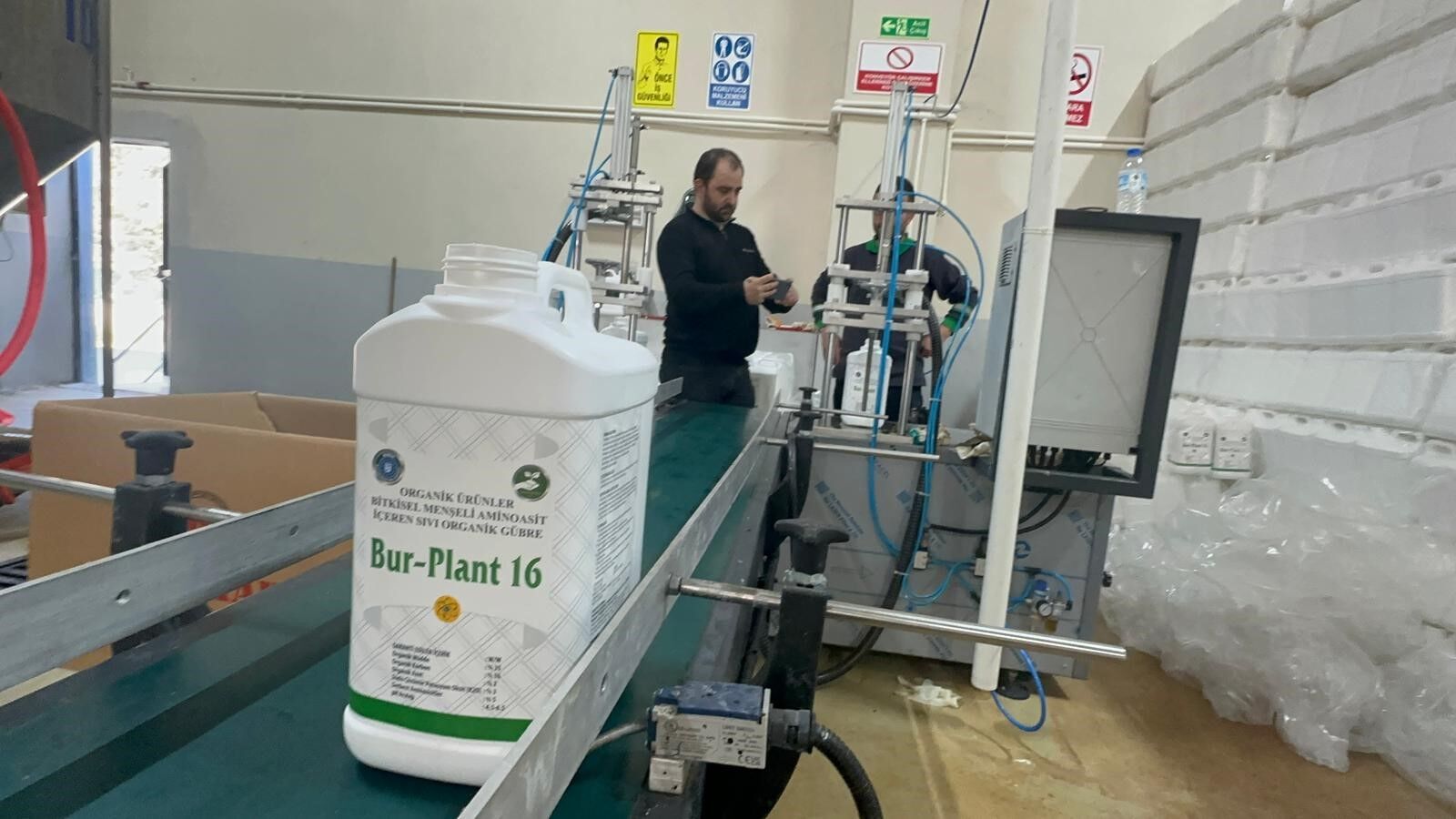 Tarım Peyzaj A.Ş'nin Mustafakemalpaşa'daki tesislerinde sıvı gübre üretimi aralıksız sürerken, ziraat odalarından gelen talep karşılanmaya çalışılıyor.