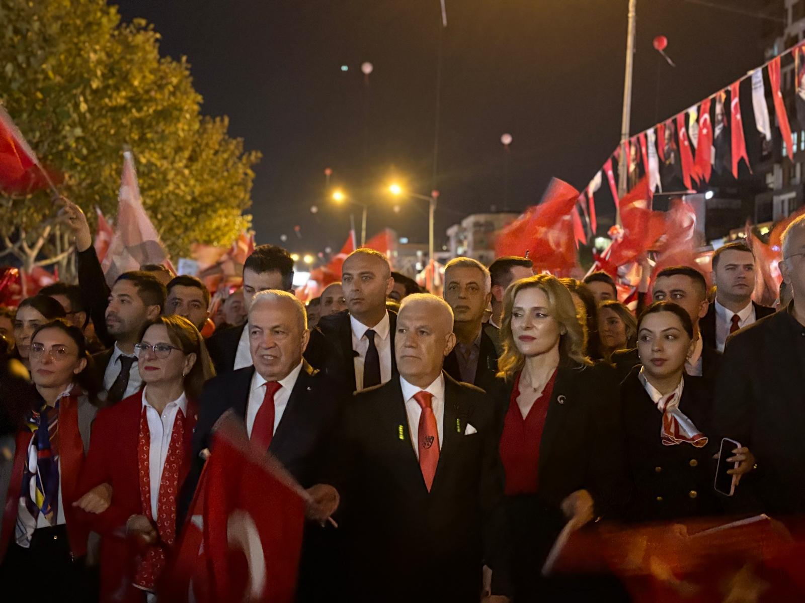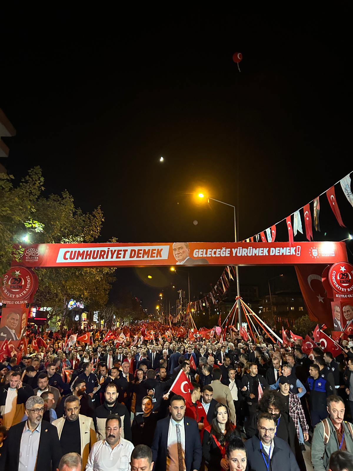 Bursa Büyükşehir Belediye Başkanı Mustafa Bozbey, yürüyüş öncesi açıklamalarda bulunarak Cumhuriyet Bayramını kutladı. Başkan Bozbey, “Tüm ülkemize tüm vatandaşlarımıza selamlar olsun. Bugün en büyük bayramımız kutlamak için toplandık. Burada Cumhuriyetimize sahip çıktığımızı göstermek için buradayız. 102 yıl önce Gazi Atatürk ve silah arkadaşları cumhuriyeti gençlere emanet ederek yola çıktılar. Vatandaşlarımız ile gençler ve çocuklar ile coşku içinde kutlamak bizim en büyük arzumuz. Biz bunu alanlarda göstereceğiz ve göstermeye de devam edeceğiz. Yaşasın Atatürk, yaşasın Cumhuriyet! Cumhuriyet Bayramımız kutlu olsun!” dedi.