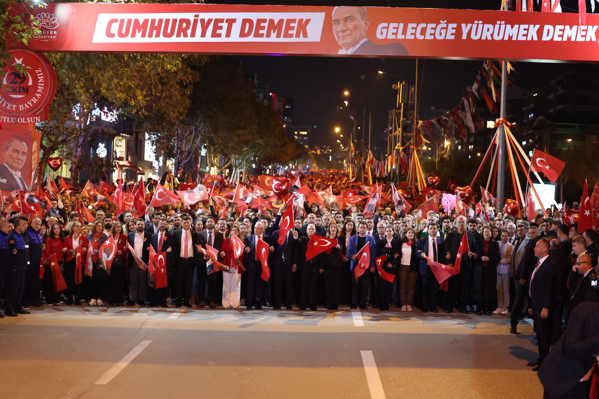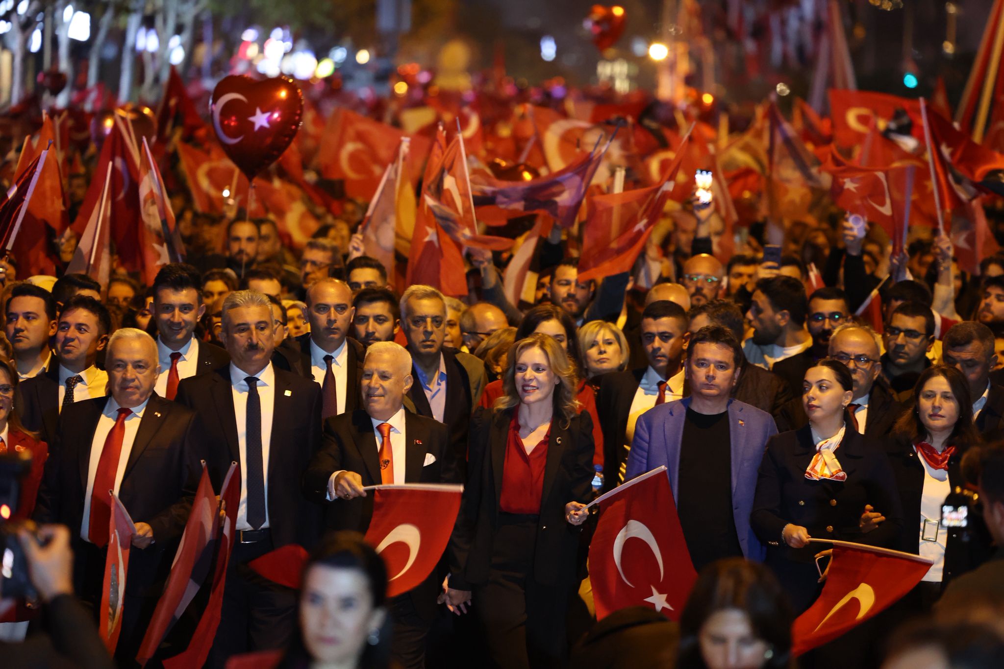 Cumhuriyet Bayramı'na yakışan kutlamaları sürdüren Bursa Büyükşehir Belediyesi, Nilüfer Belediyesi ile birlikte "Cumhuriyet Yürüyüşü" gerçekleştirdi.