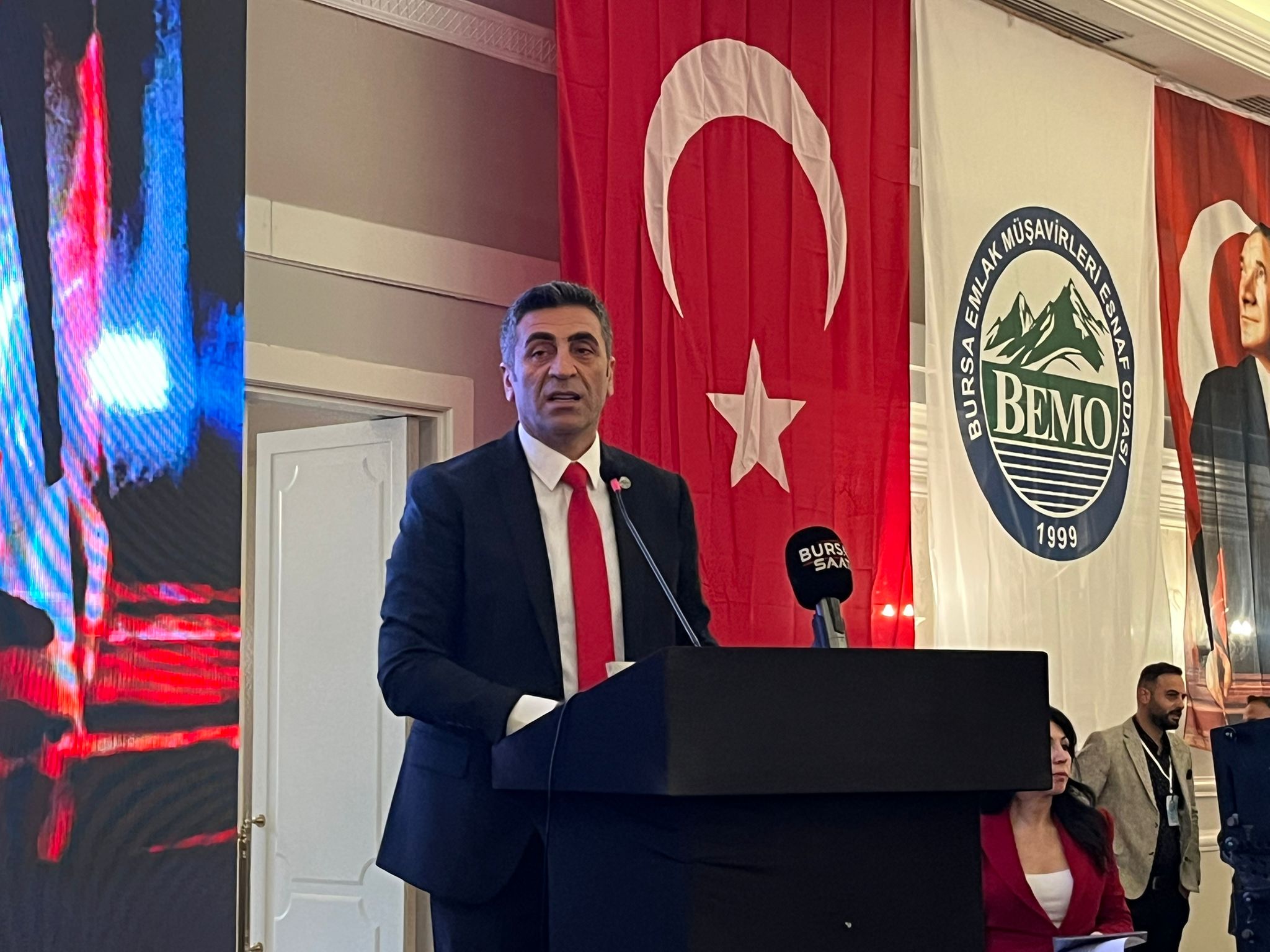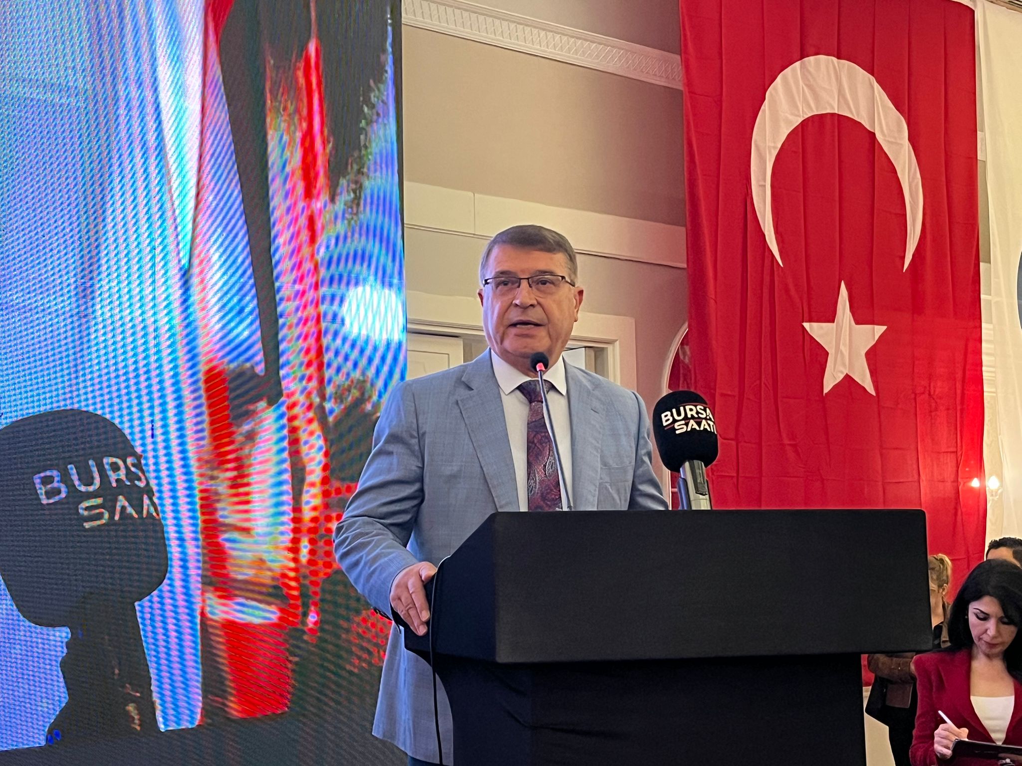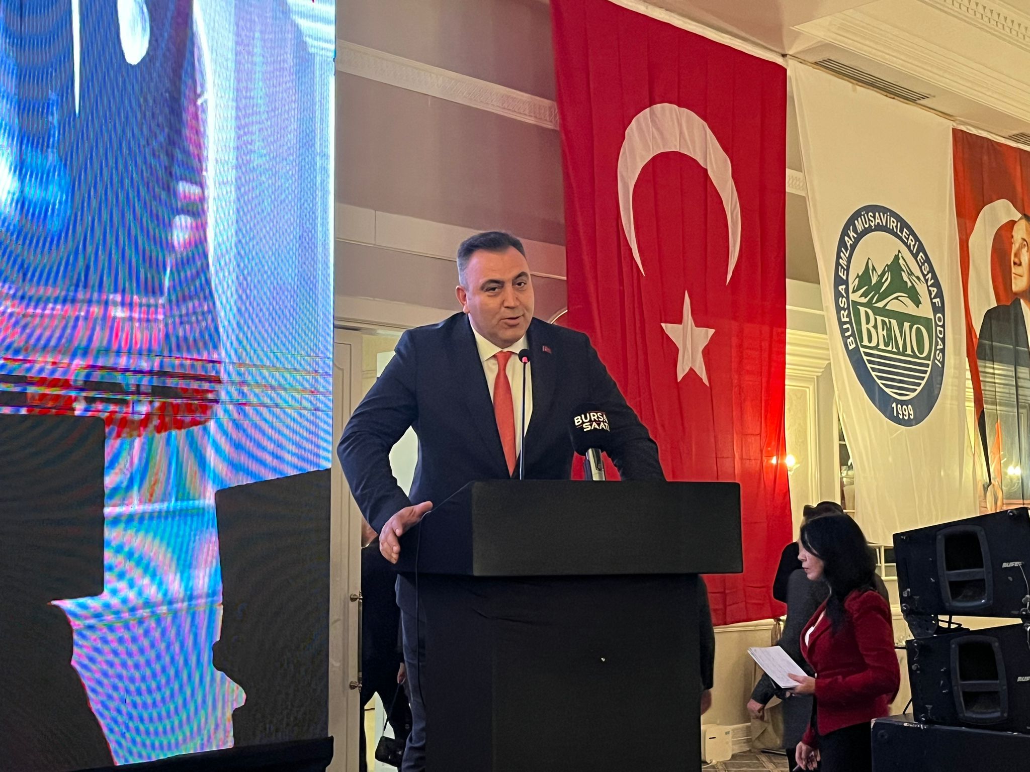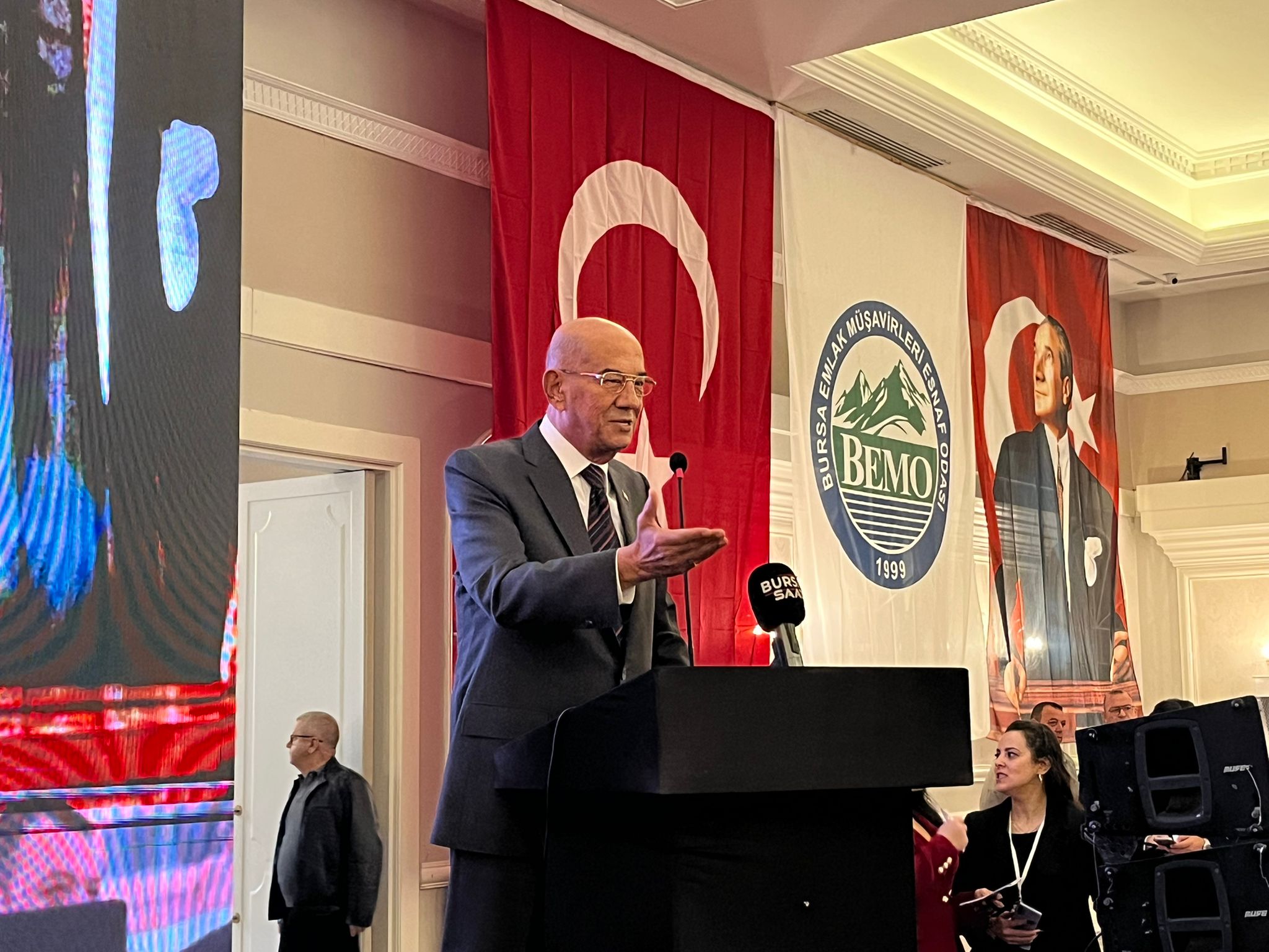 Bursa Emlak Müşavirleri Esnaf Odası Bursa Şubesi, Cumhuriyet’in 102. yılı dolayısıyla anlamlı bir etkinliğe imza attı. “Cumhuriyet Tarihi’nin Yolculuğu” temasıyla Podyum Davet’te düzenlenen programda açılış konuşmasını Oda Başkanı Erdal Çelebi yaptı. Çelebi, ünlü tarihçi Prof. Dr. İlber Ortaylı’nın sağlık sorunları nedeniyle hastaneye kaldırıldığını belirterek, “Hocamız affını istedi, ancak tüm meslektaşlarımıza selam ve sevgilerini gönderdi. Sağlığına kavuştuğunda yeniden Bursa’da ağırlayacağız.” dedi.