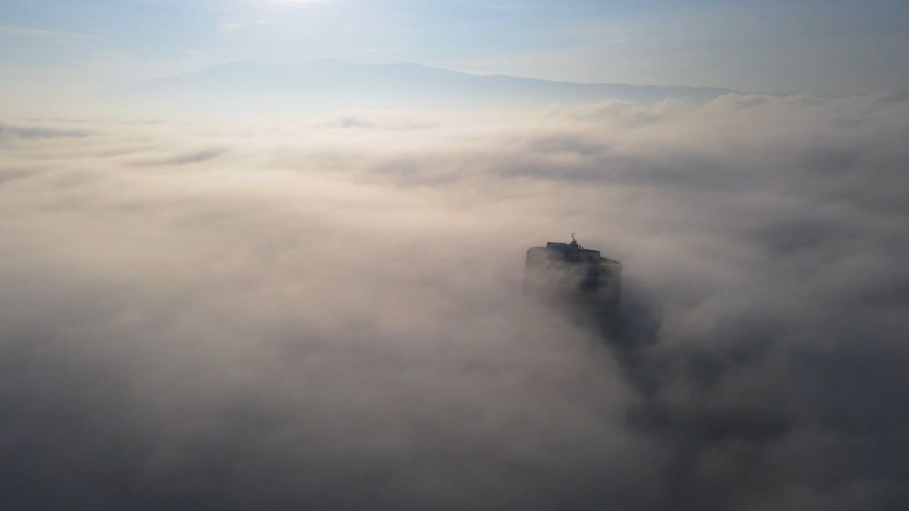 Bursa'da sabah saatlerinde etkili olan sis dron kamerasına yansıdı. Kentin büyük bölümü sis altında kaybolurken, Mudanya yolundaki yüksek binalar göğe yükselen görüntüleriyle dikkat çekti. Görüntülerde yalnızca bu binaların bulutların üzerine çıktığı görüldü.
