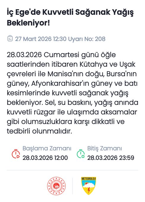 Uyarı kapsamında, Kütahya ve Uşak çevreleri ile Manisa’nın doğu kesimleri ve Afyonkarahisar’ın güney ve batı bölgeleri de risk altında bulunuyor. Ancak uzmanlar, özellikle Bursa’da kısa sürede etkili olabilecek yoğun yağışlara karşı vatandaşların daha dikkatli olması gerektiğini vurguluyor.