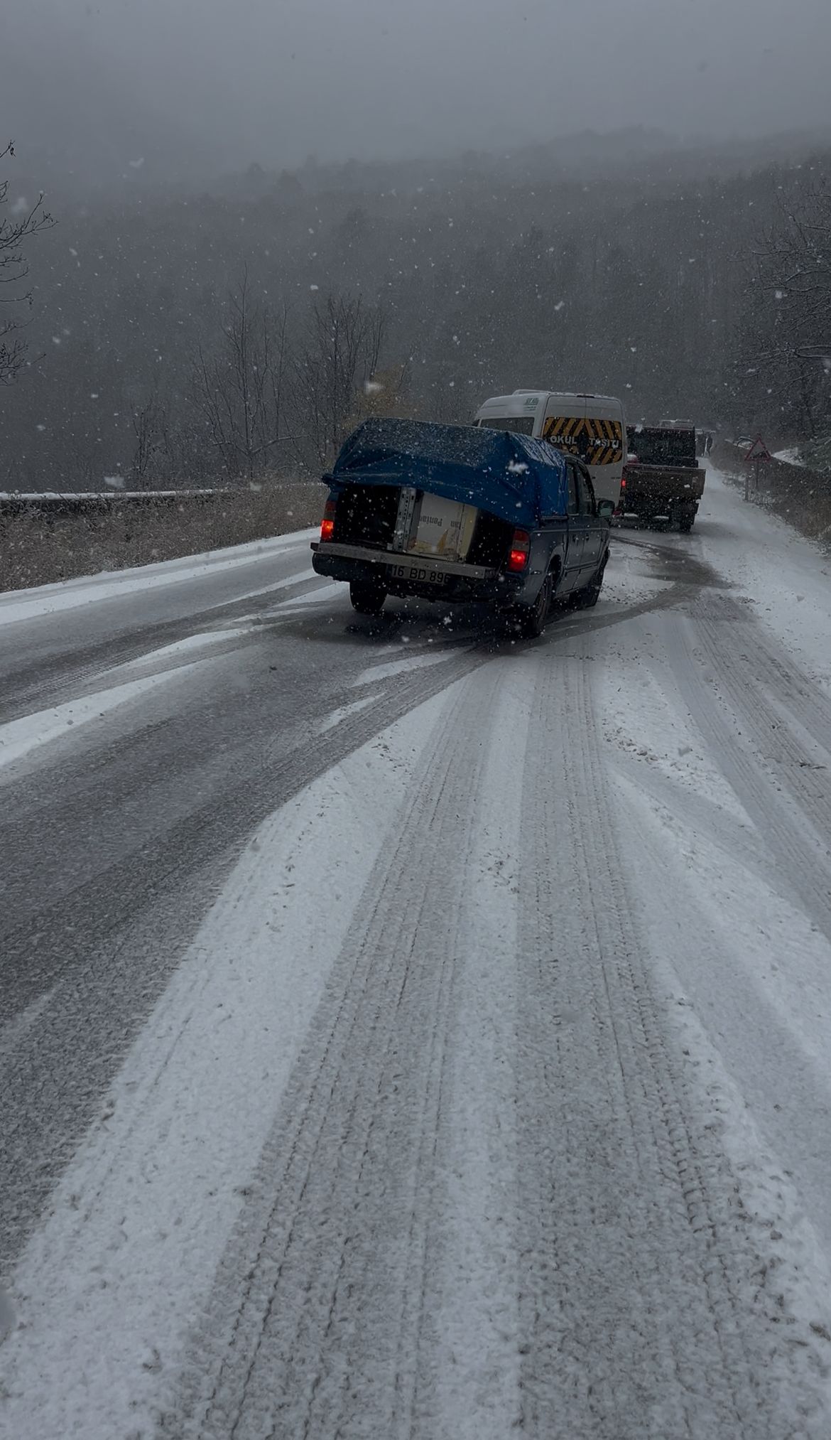 Özellikle yüksek kesimlerde etkisini artıran kar yağışı sonrası yolda kalan araçlar uzun kuyruklar oluşturdu.
