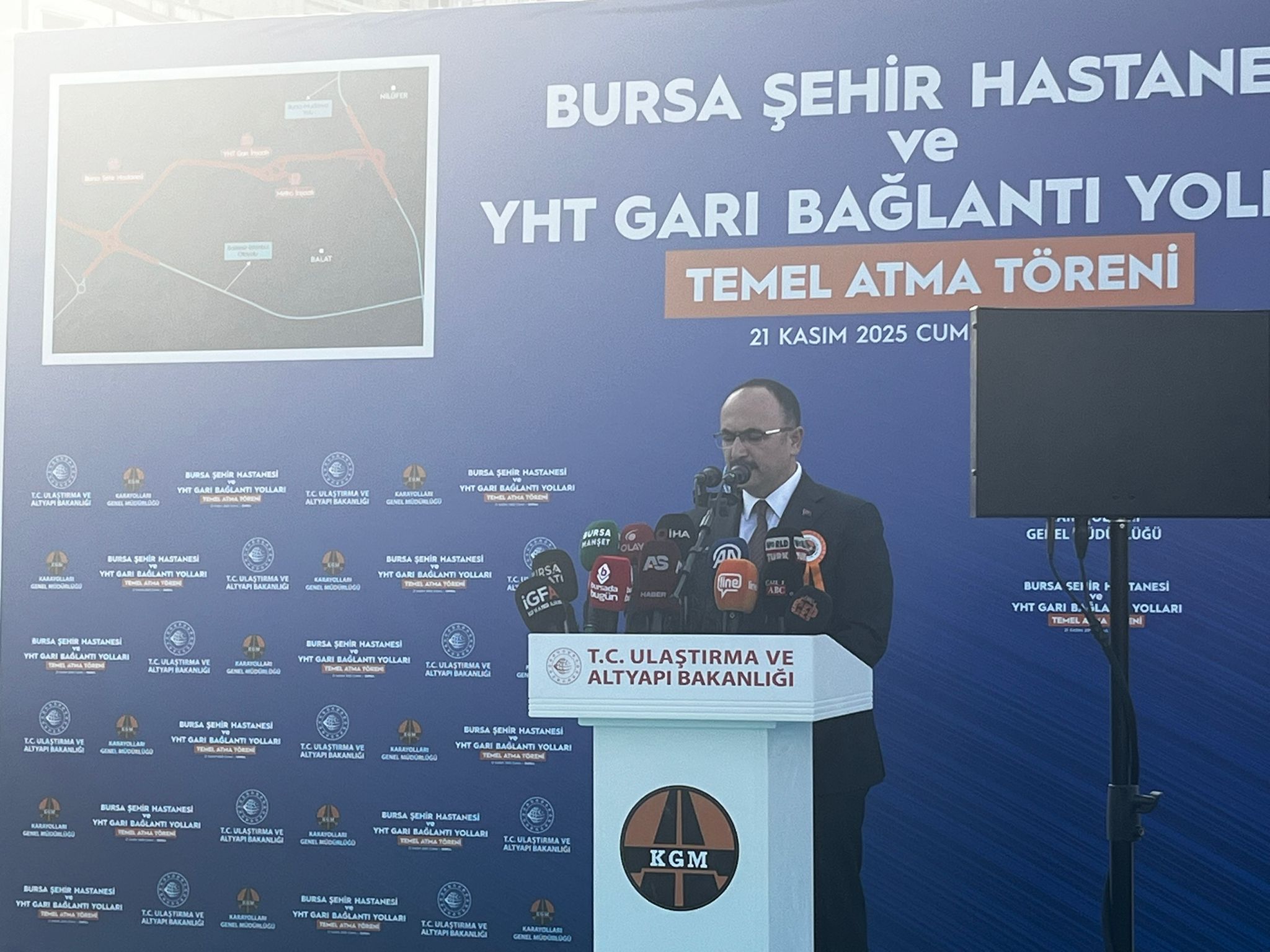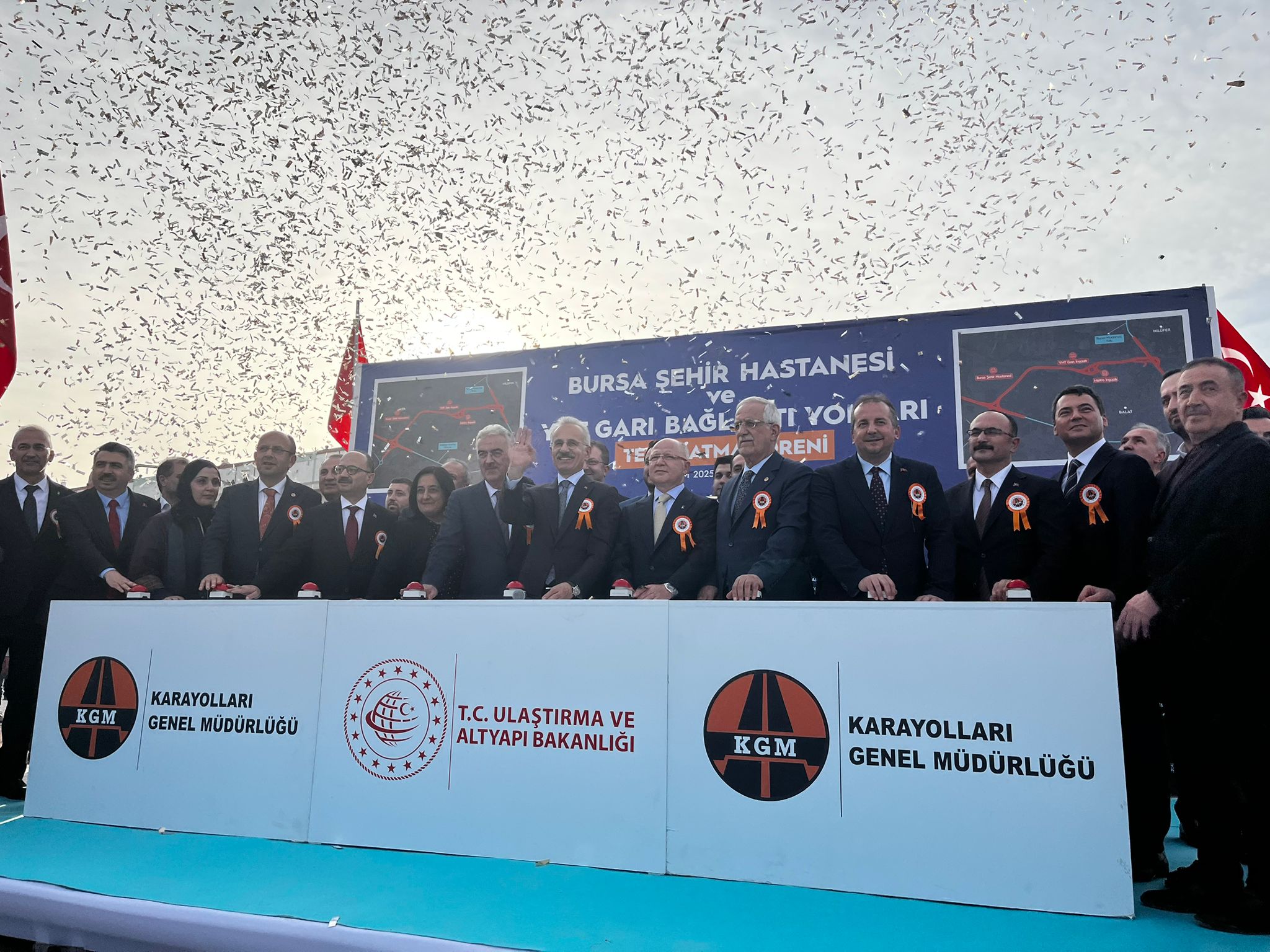 Bursa Şehir Hastanesi ile YHT Garı’nı birbirine bağlayacak yeni yolların temeli, Ulaştırma ve Altyapı Bakanı Abdulkadir Uraloğlu’nun katılımıyla düzenlenen törenle atıldı.