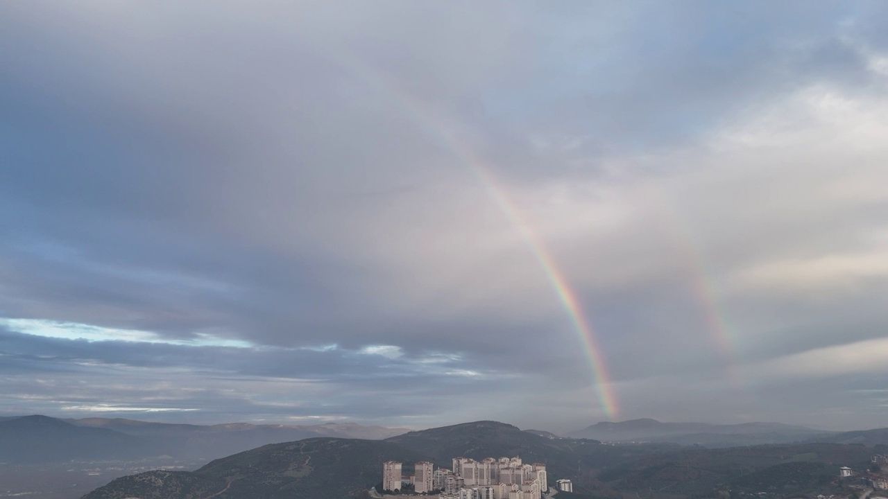 Bursa’nın Kestel ilçesi semalarında herhangi bir yağış olmamasına rağmen gökkuşağı oluştu. Gökkuşağının ortaya çıkmasıyla birlikte birçok vatandaş cep telefonlarıyla bu anları kaydetti. Görsel şölen sunan gökkuşağı dronla da görüntülendi.