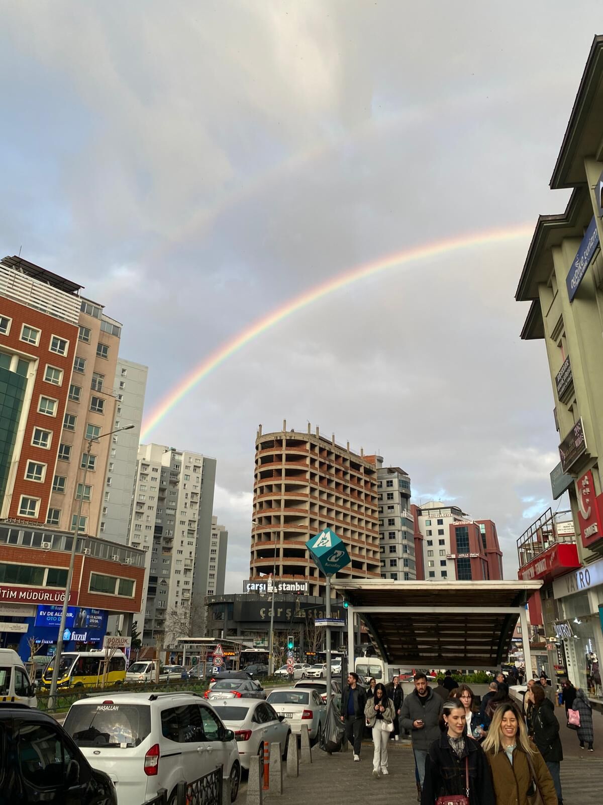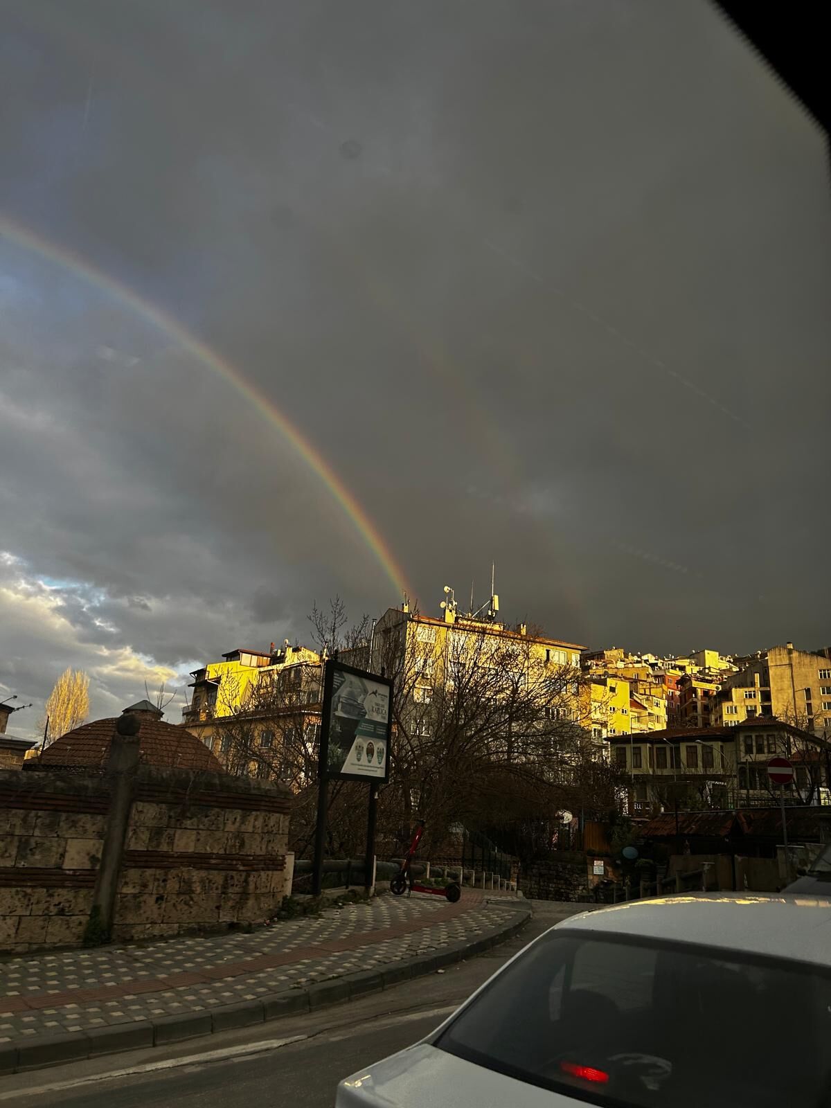 Kent merkezinin birçok noktasından net şekilde görülen gökkuşağı, özellikle yüksek kesimlerde daha belirgin hale geldi. Vatandaşlar bu anları cep telefonlarıyla kaydederken, ortaya kartpostallık görüntüler çıktı.