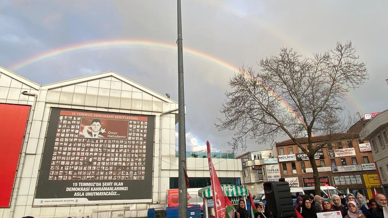 Bursa’da yağışın ardından ortaya çıkan gökkuşağı, kentte görsel bir şölen oluşturdu.