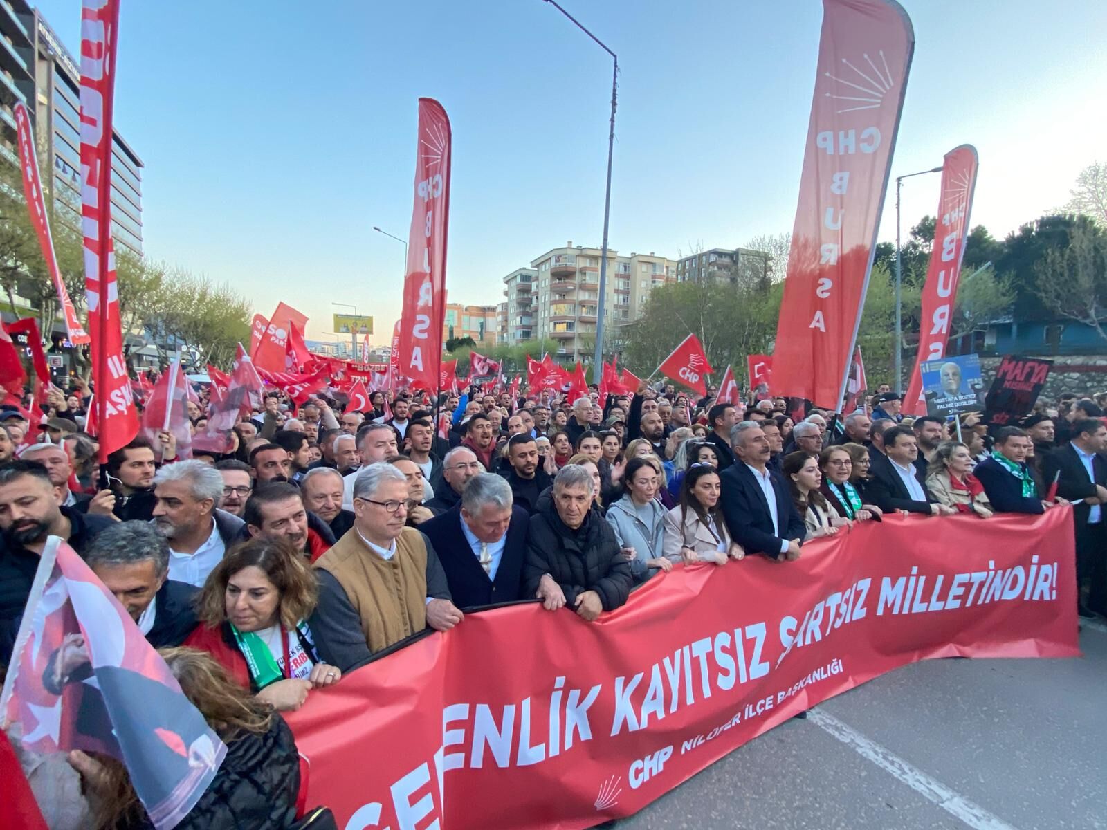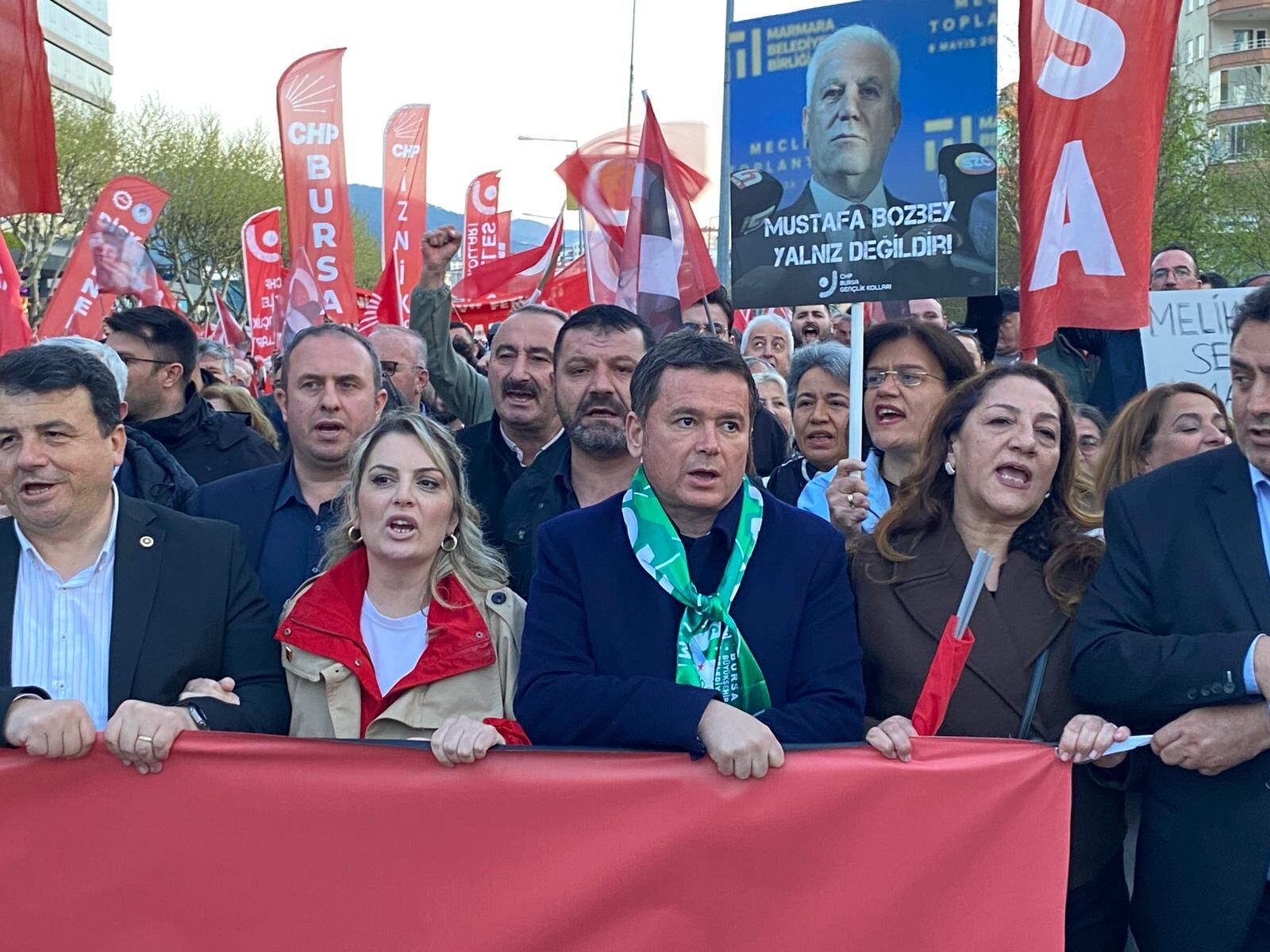 Yürüyüşe Cumhuriyet Halk Partisi Bursa milletvekilleri Kayıhan Pala, Orhan Sarıbal, Nurhayat Altaca Kayışoğlu ve Hasan Öztürk’ün yanı sıra çok sayıda ilçe belediye başkanı da katıldı. Siyasiler, yürüyüş boyunca vatandaşlarla birlikte slogan atarak Bozbey’e destek mesajı verdi.