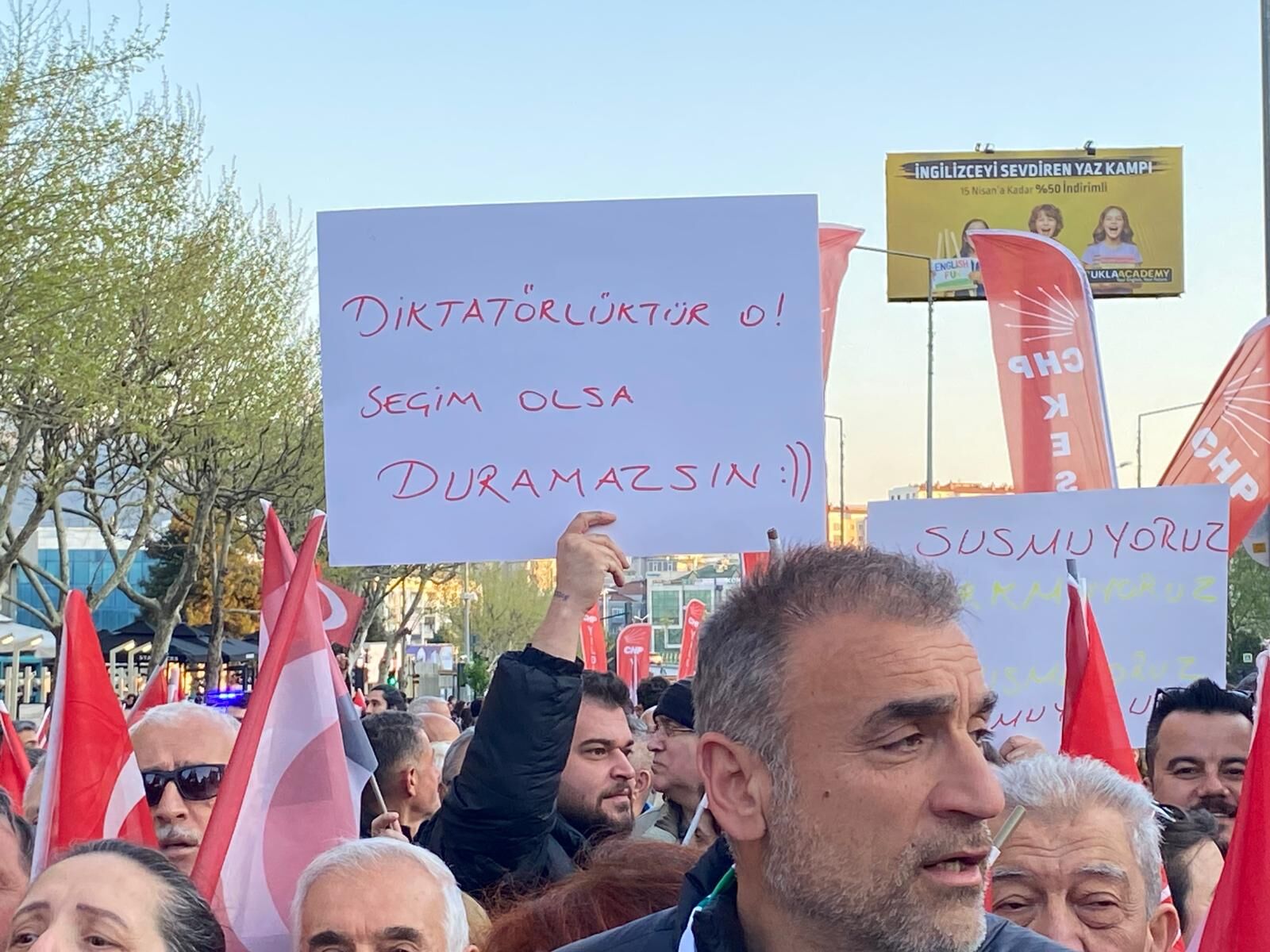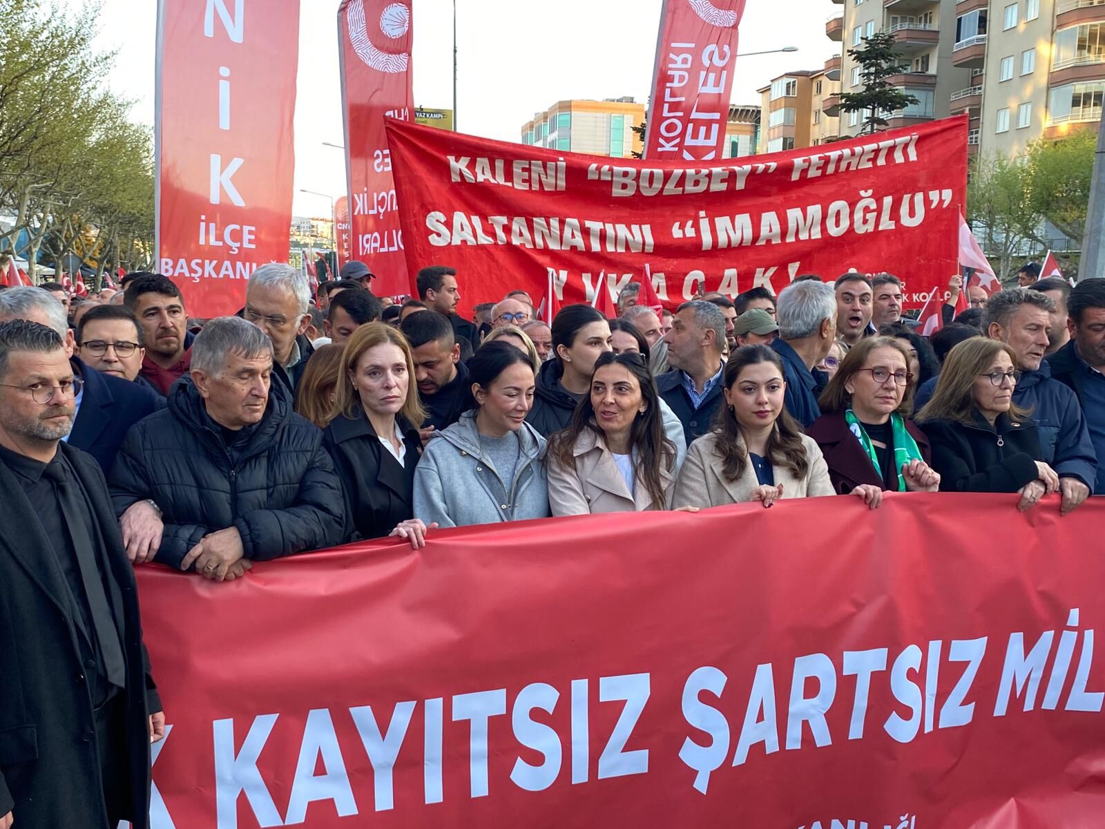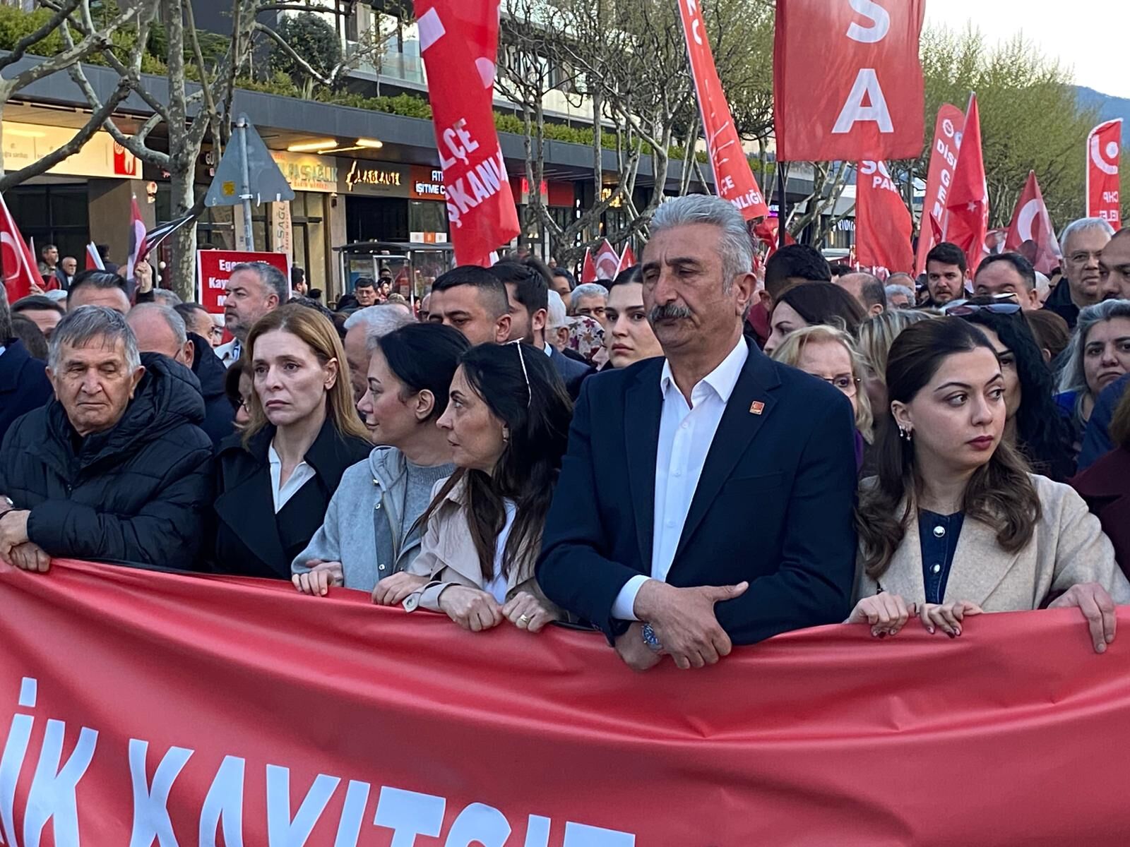Yürüyüşün en dikkat çeken anlarından biri, Mustafa Bozbey’in eşi Seden Bozbey ile kızı Side Bozbey’in kortejin ön sıralarında yer alması oldu. Aile üyelerinin duygusal anlar yaşadığı gözlemlenirken, vatandaşlar sık sık destek alkışlarıyla eşlik etti. Ailenin yüksek morali dikkat çekti.