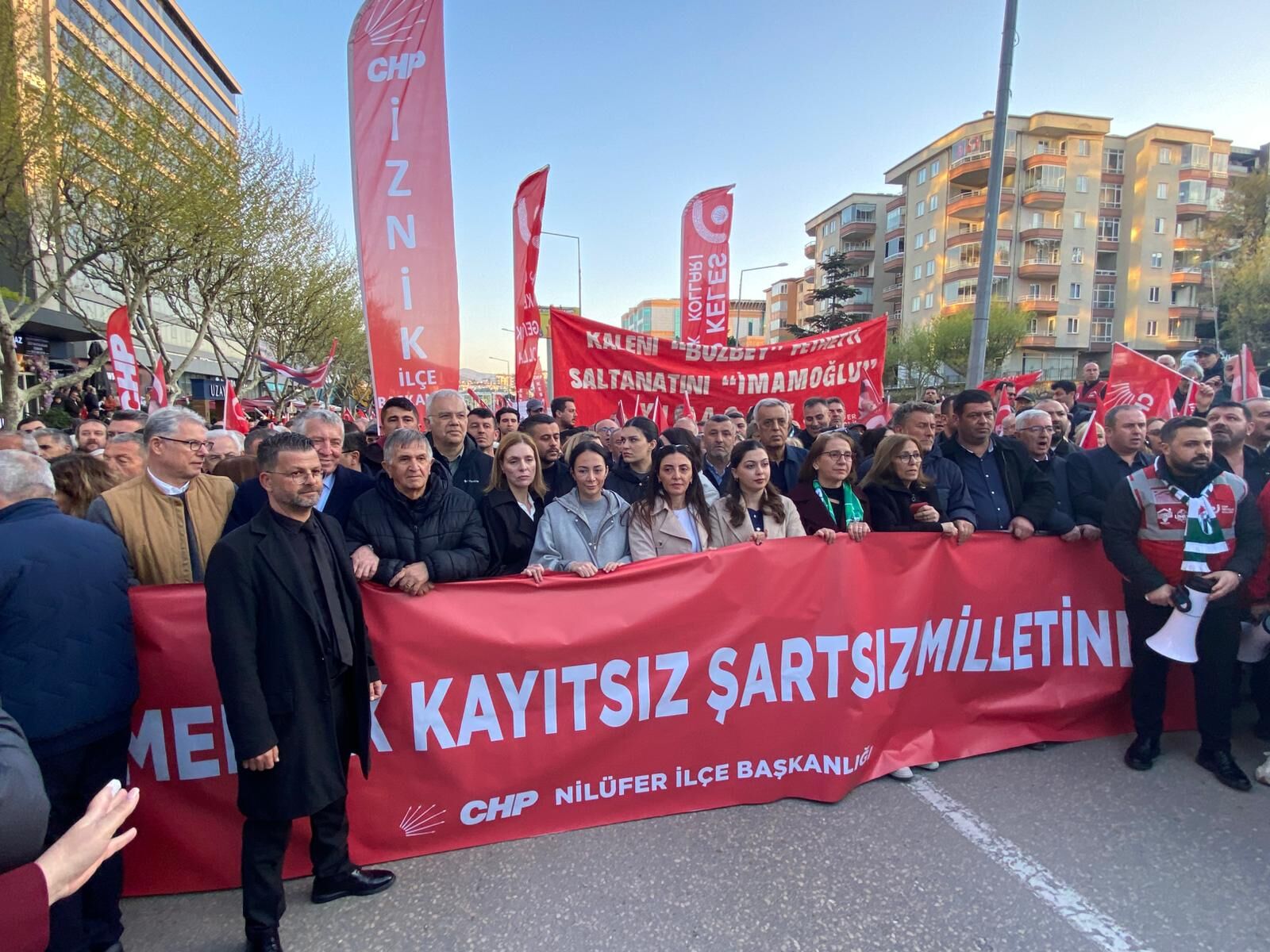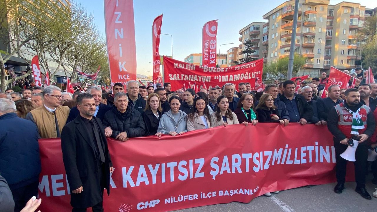 Bursa’da siyasi tansiyonu yükselten gelişmelerin ardından kentte geniş katılımlı bir yürüyüş düzenlendi. Fatih Sultan Mehmet Bulvarı’nda toplanan binlerce Bursalı, ellerinde pankartlar ve dövizlerle Mustafa Bozbey’e özgürlük talebini dile getirdi. Yürüyüş boyunca kalabalık sık sık sloganlar atarak tepkisini ortaya koydu.