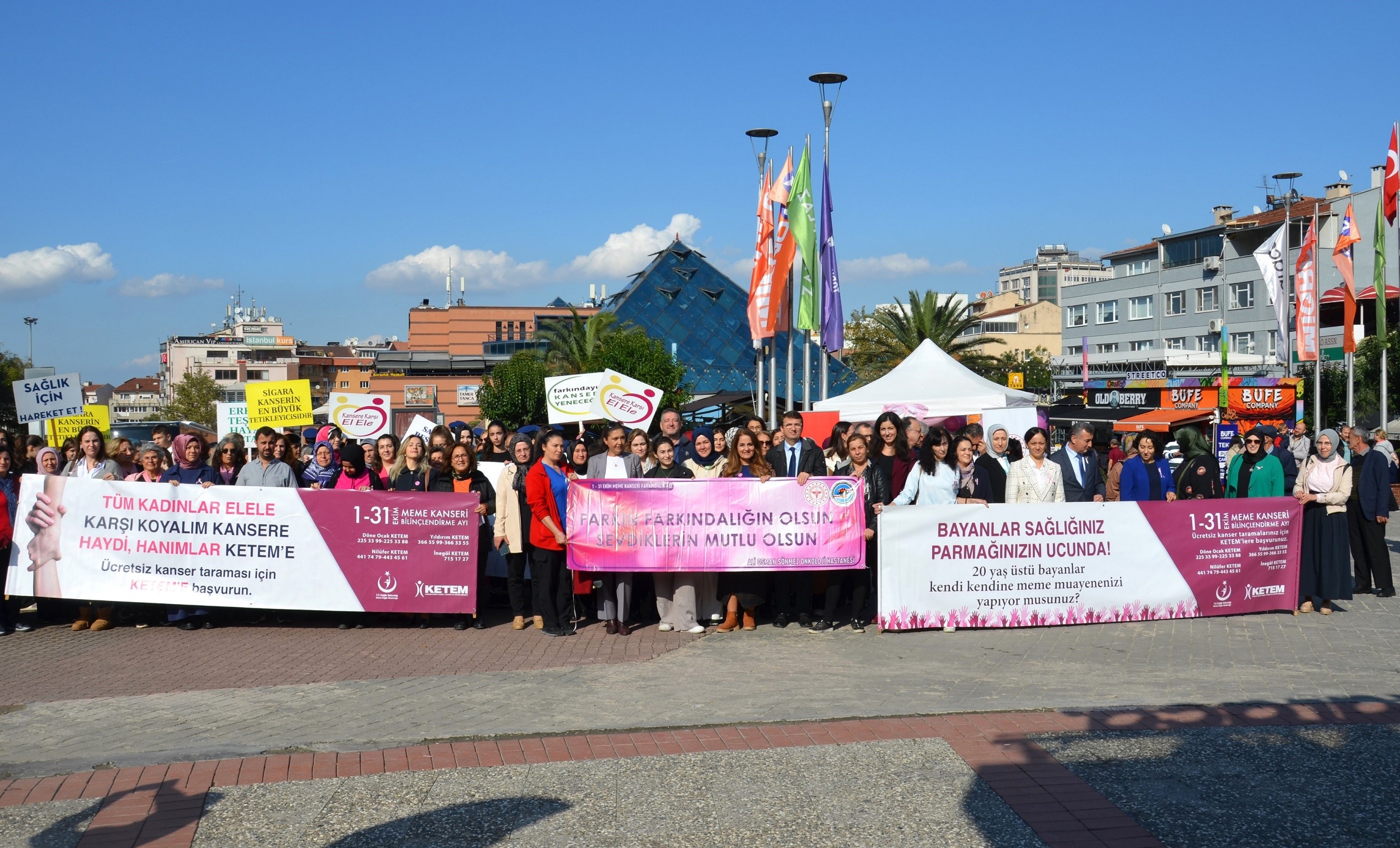 Sağlık Bakanlığı tarafından ülke genelinde yürütülen 1-31 Ekim Meme Kanseri Farkındalık Ayı etkinlikleri kapsamında gerçekleştirilen etkinlikte Cumhuriyet Caddesi'nden Zafer Meydanı'na doğru yoğun katılımla gerçekleşen bir yürüyüş yapıldı. Bursa Büyükşehir Belediyesi Bandosu'nun marşlarıyla eşlik ettiği yürüyüşe; İl Sağlık Müdürlüğü Halk Sağlığı Hizmetleri Başkanı Dr. İrfan Oğuz, Kamu Hastaneleri Başkanı Dr. Melike Savaş, sağlık çalışanları, sivil toplum kuruluşları, kanser dernekleri ve öğrenciler katıldı. Vatandaşların yoğun ilgiyle takip ettiği etkinlikte, lise öğrencileri ellerinde tuttuğu meme kanserinin simgesi olan dev ‘pembe kurdele' ile cadde boyunca yürüyüşe eşlik etti.