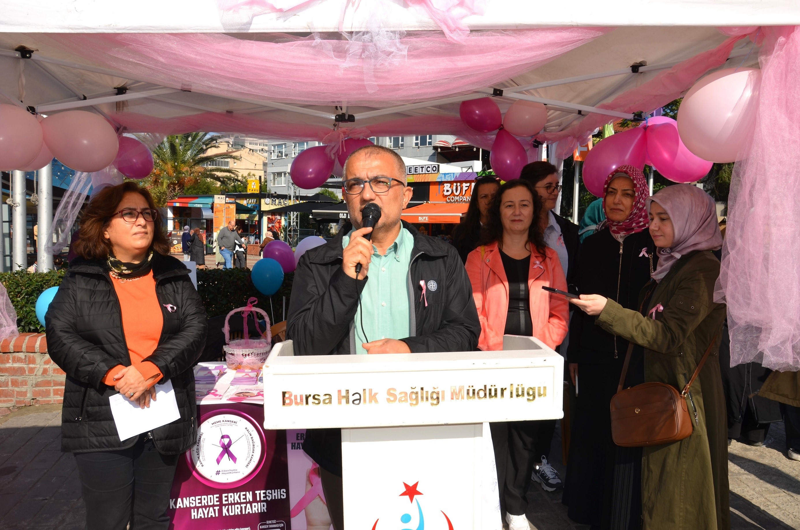 Yürüyüşün ardından Zafer Meydanı'nda konuşan Bursa Halk Sağlığı Hizmetleri Başkanı Dr. İrfan Oğuz, meme kanseri konusunda toplumsal bir bilinç oluşturabilmek adına etkinliği düzenlediklerini söyledi. Meme kanserinin kadınlarda kanser türlerinin içerisinde ölüm nedenlerinde ilk sıralarda geldiğini hatırlatan Dr. Oğuz, ‘Bu çerçevede bizler de geçen sene sağlıklı hayat merkezlerimiz ve ikinci basamak kuruluşlarımızda 276 binden fazla kişiye kanser taraması yaptık. Bunların arasında meme kanseri, kolorektal ve rahim ağzı kanseri olmak üzere, 210 kişide kanser erken dönemde teşhis edildi. İşin sadece mali boyutunu düşünsek bile bir kanser hastasını erken dönemde yakalamak hem hasta, hem devletimiz için birçok mali yükten kurtulmak demektir. Bunun yanında kanser hastalığının sosyal ve psikolojik kısımları da fazlasıyla yıpratıcı olmaktadır" diye konuştu.