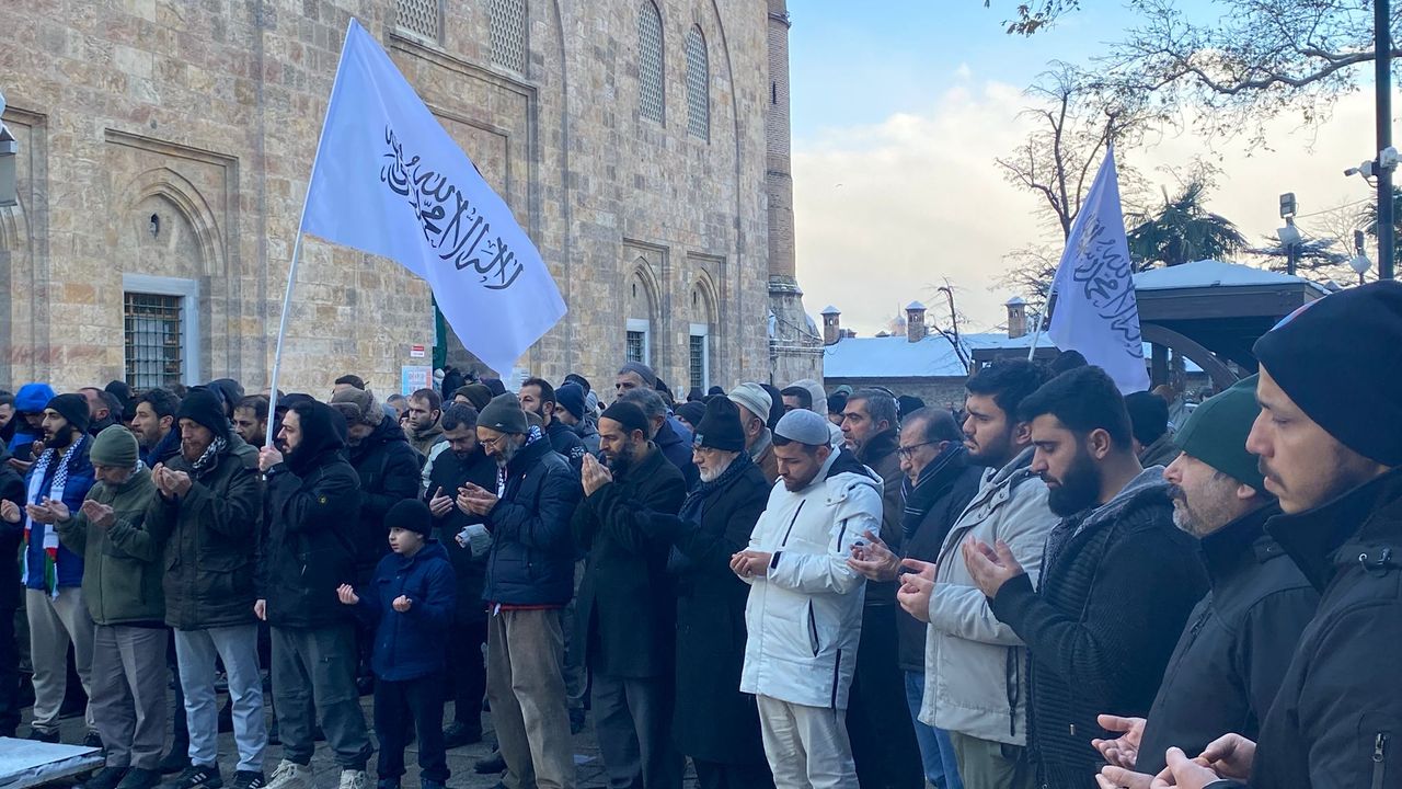 Bursa Gazze Dayanışma Platformu, Bursa Ulucami önünde ikindi namazına müteakip Filistin’e destek eylemi düzenledi. Eyleme katılan grup, Filistin’de yaşanan gelişmelere dikkat çekmek amacıyla bir araya geldi.