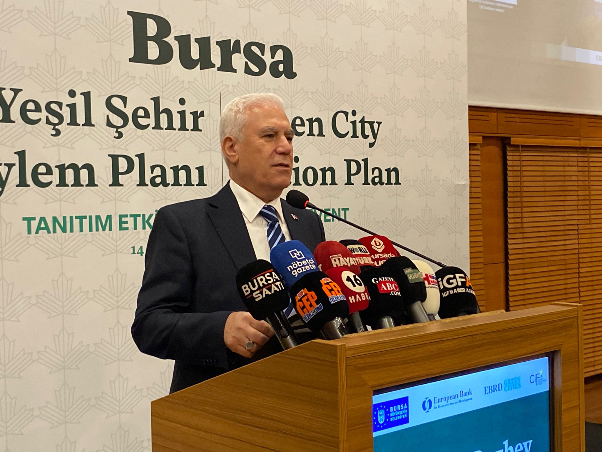 Bu kapsamda oluşturulan “Bursa Yeşil Şehir Eylem Planı”, Merinos Atatürk Kongre ve Kültür Merkezi’nde düzenlenen tanıtım toplantısıyla kamuoyuna sunuldu. Programa, Bursa Büyükşehir Belediye Başkanı Mustafa Bozbey başta olmak üzere çok sayıda davetli katıldı.