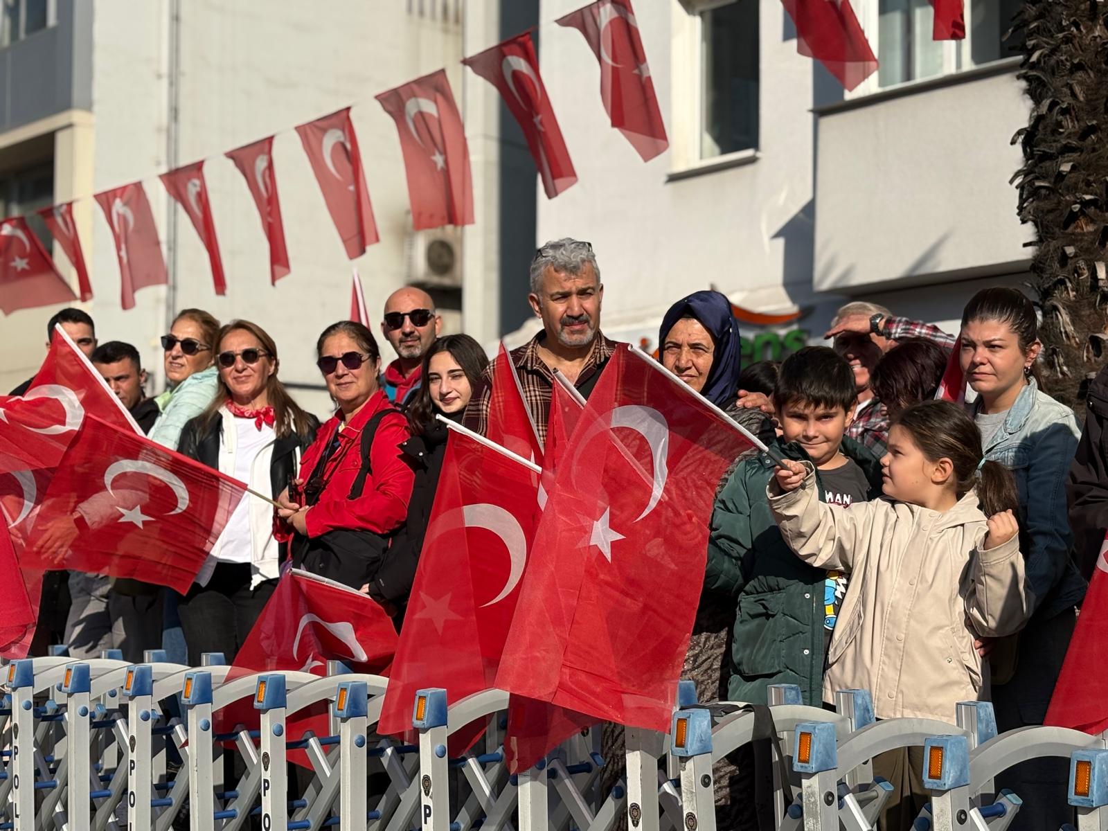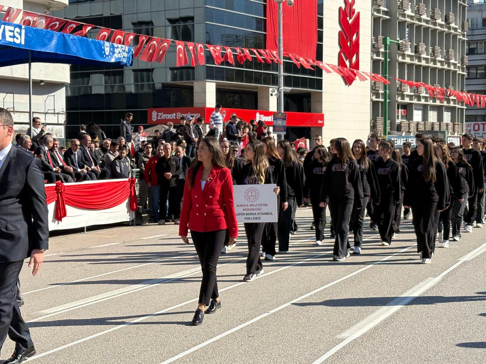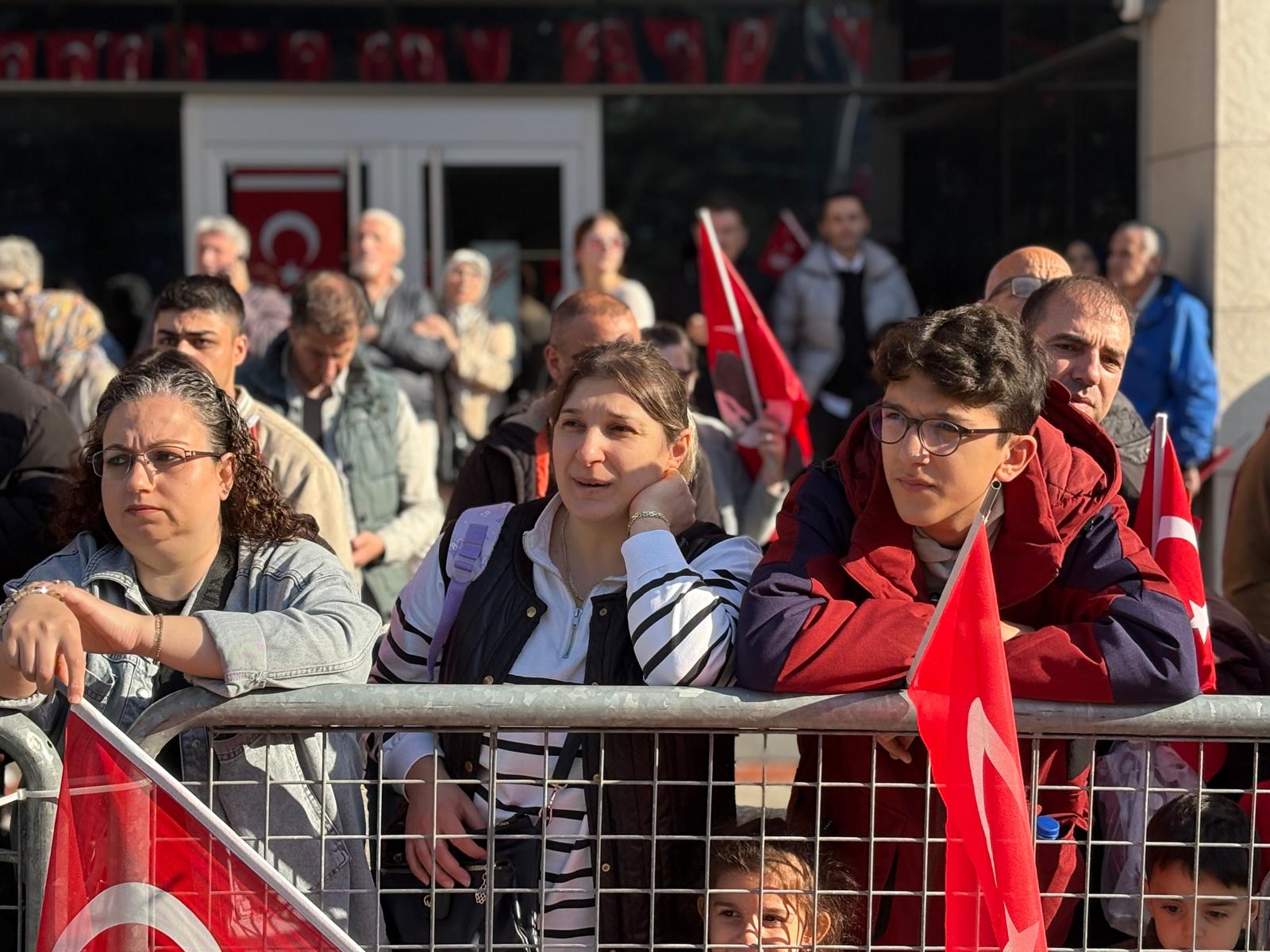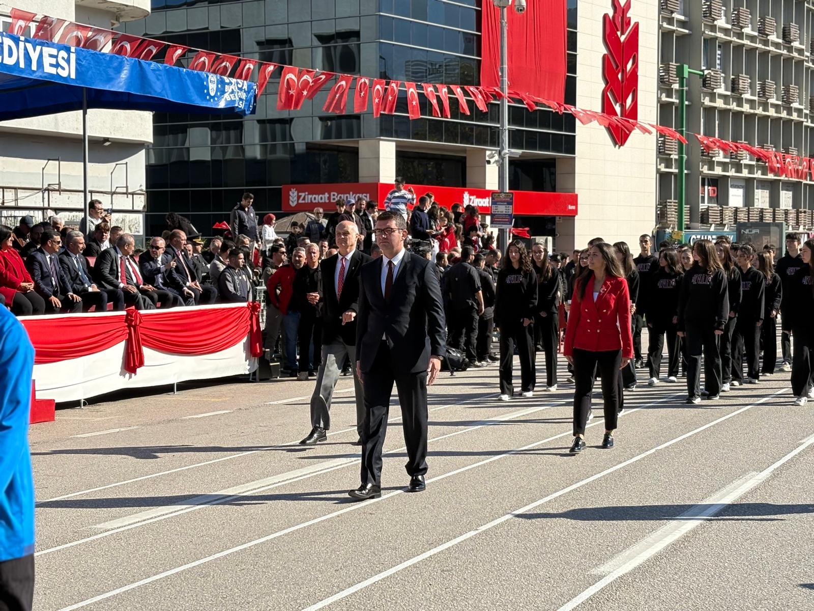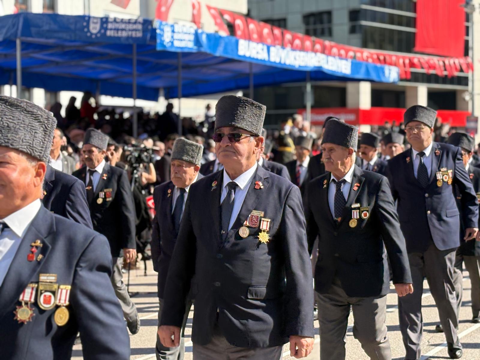 Bursa Valisi Erol Ayyıldız, Bursa Büyükşehir Belediye Başkanı Mustafa Bozbey, askeri erkân, siyasi parti temsilcileri ve vatandaşların katıldığı törende saygı duruşunda bulunuldu, İstiklal Marşı okundu.