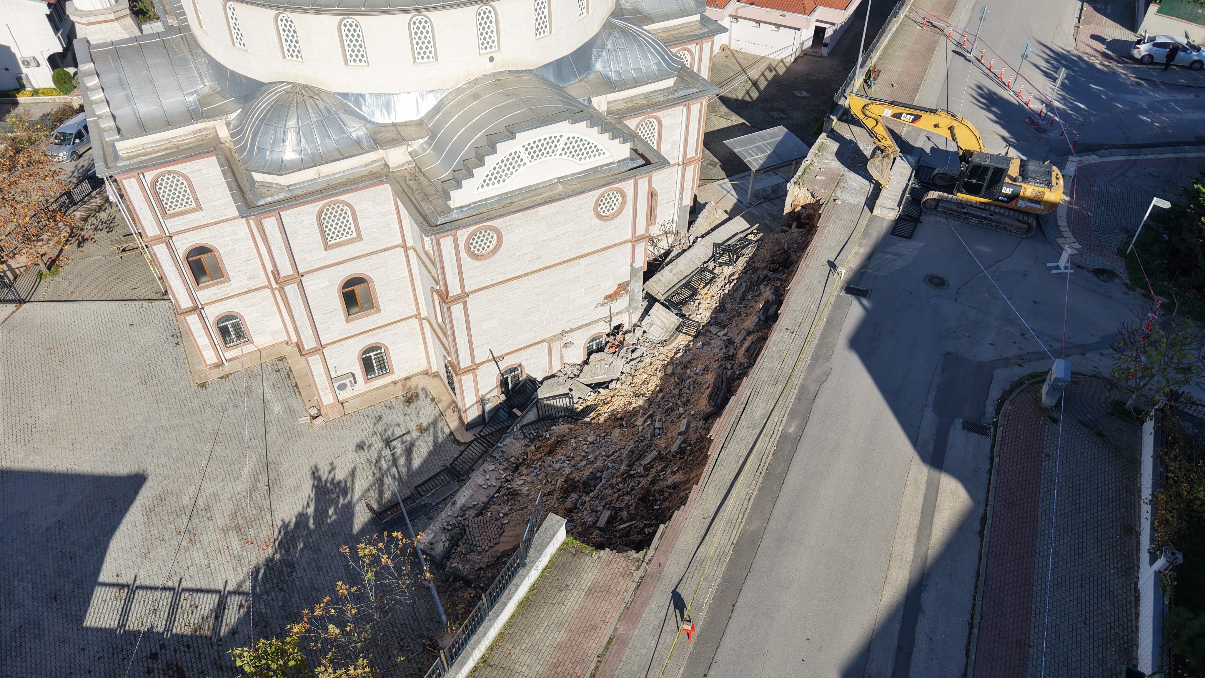 Sabah saatlerinde yürüyüş yapan kadının bilgi vermesinin üzerinden 9 saat sonra istinat duvarı ve yürüyüş yolu caminin arka bahçesine ve Kur'an kursu üzerine büyük bir gürültü ile yıkıldı. Tedbirlerin alındığı şeridin çekildiği alanda yaşanan yıkımda can kaybı yaşanmadı.