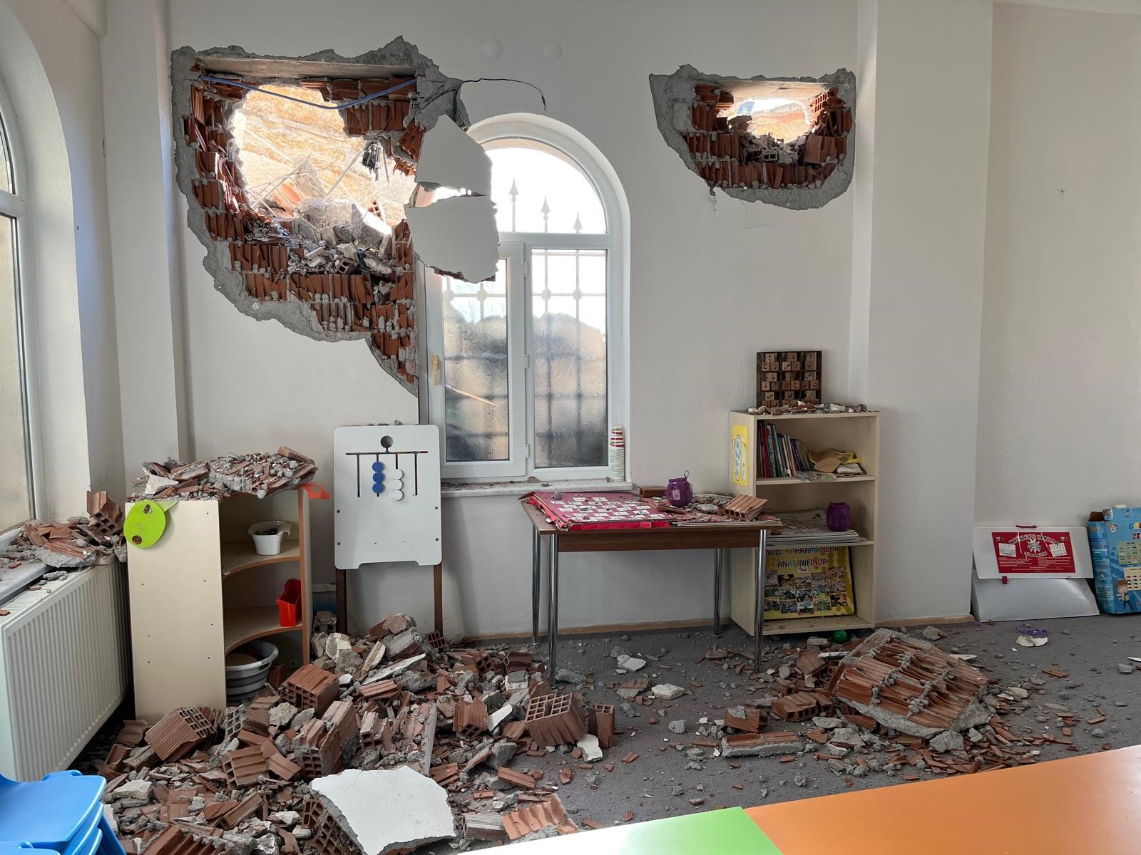 Çok şükür yaralı yada can kaybımız yok. Cami ve Kur'an kursundaki zararın en yakın zamanda giderileceğini umuyoruz" diye konuştu.