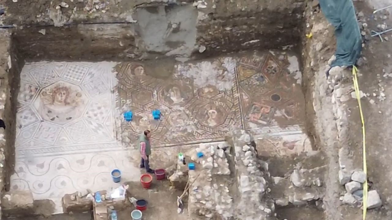 Ekipler büyük bir gizlilik içerisinde devasa mozaikte kazı ve temizlik çalışması yapıyor. Bölgeye kimse yaklaştırılmazken polis ve zabıta 24 saat nöbet tutuyor. O alan dron ile ilk kez İHA tarafından görüntülendi.