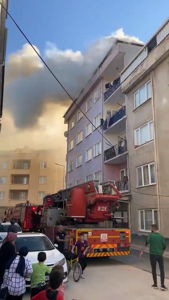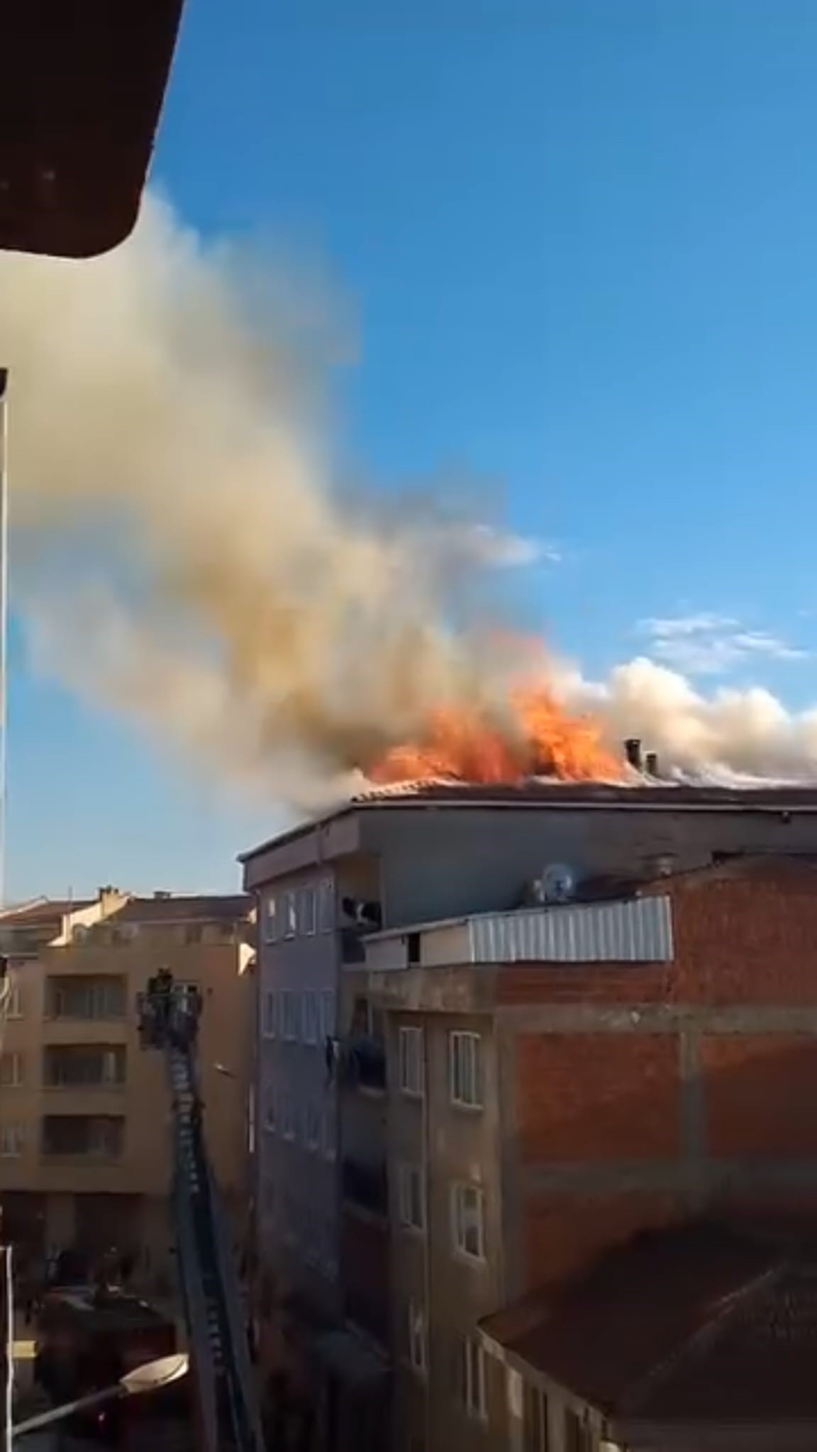 Yangın, saat 17.00 sıralarında Orhaniye Mahallesi Çömlekçiler Sokak’ta bulunan 5 katlı apartmanın çatısında meydana geldi.