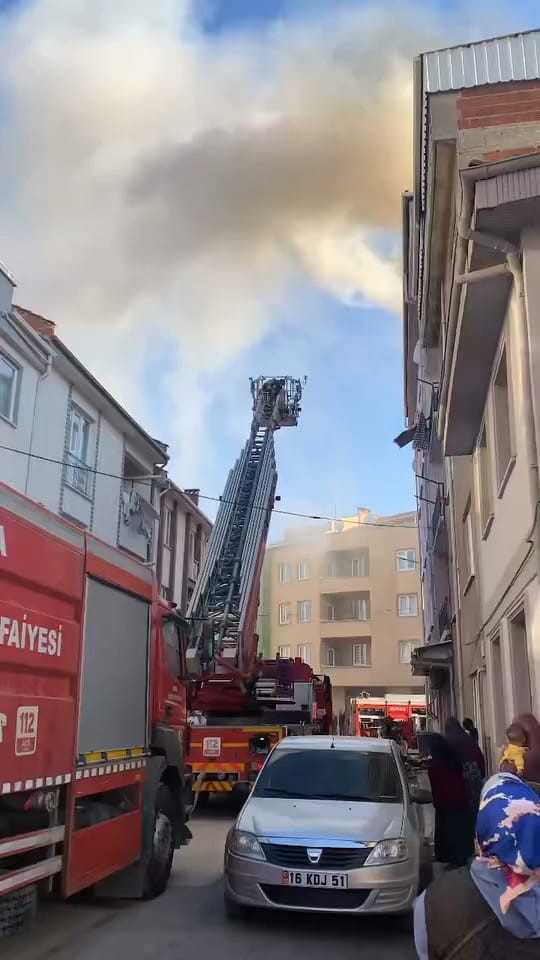 Bursa’nın İnegöl ilçesinde bir apartmanın çatısında yangın çıktı.